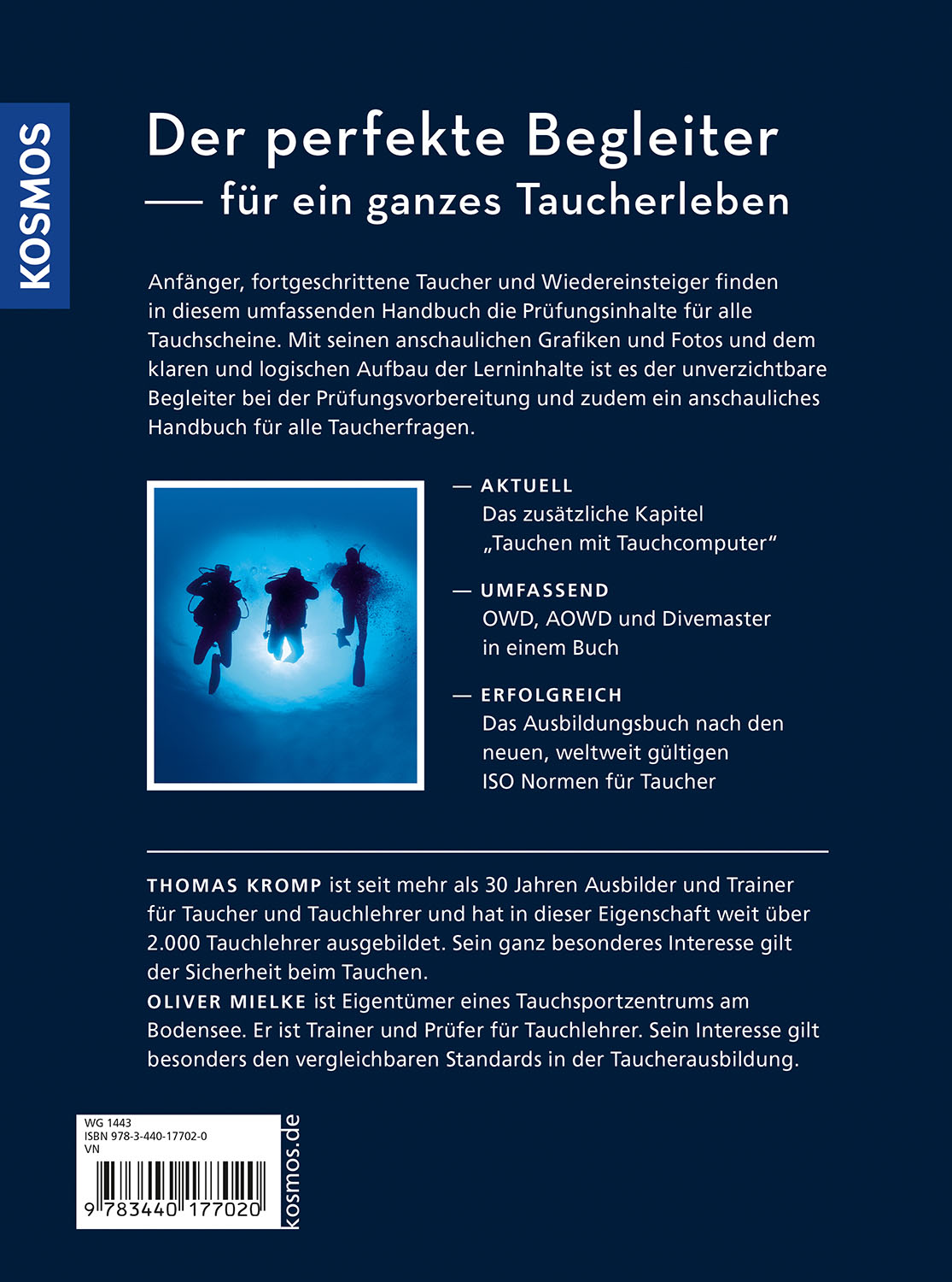 Einsteiger, Fortgeschrittene und Rückkehrer ins Hobby finden in diesem umfassenden Handbuch die Prüfungsinhalte für alle Tauchscheine. Mit seinen anschaulichen Grafiken und Fotos und dem klaren Aufbau der Lerninhalte ist es ideal für die Prüfungsvorbereitung und zudem ein fundierter Ratgeber in allen Taucherfragen. Tauchlehrer und Eltern finden außerdem spezielle Informationen zur Tauchausbildung von Kindern und Jugendlichen. Die langjährige Praxis der Tauchexperten Thomas Kromp und Oliver Milke garantiert: Das Lernen für die Tauchprüfung muss keine trockene Angelegenheit sein.