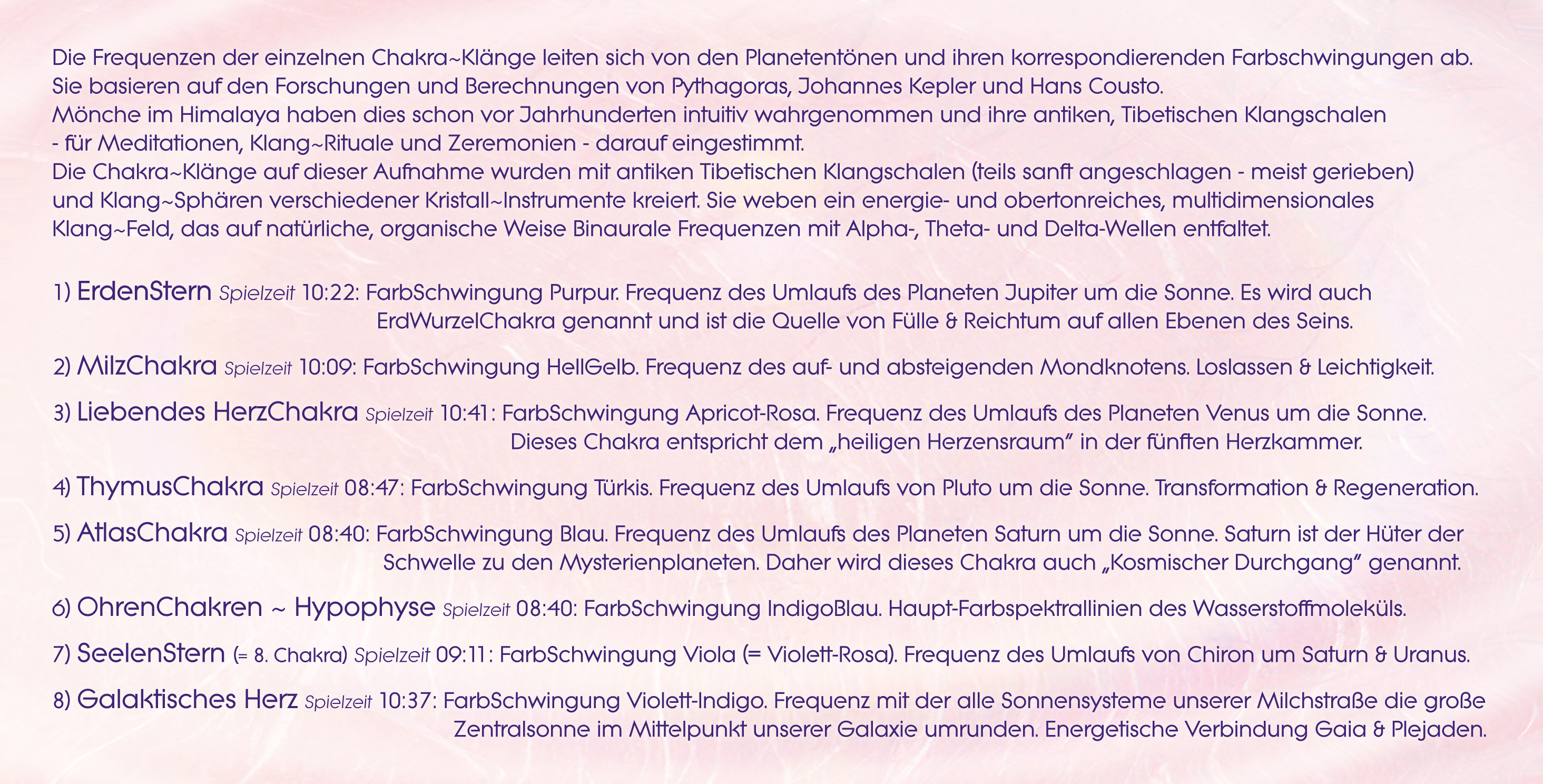 | Schlagworte | 5. Herzkammer • achtes chakra • Alphawellen • Atlas • Atlaschakra • Binaural • Chakra-Heilung • Chakren • Channeling • Cousto • Das große Erwachen • Deltawellen • Erdenstern • Erdwurzelchakra • fünfte Herzkammer • gaia • Galaktisches Herz • Heiliger Herzensraum • Heilung • Herzchakra • herzraum • Hypophyse • Jupiter • Kepler • Klangschale • kosmischer Durchgang • Kristallklang • Meditation • Milchstraße • milzchakra • Mondknoten • Multidimensional • Oberton • Ohrenchakren • Pavlina Klemm • Planetenton • Plejaden • Plejader • Pluto • Pythagoras • Regeneration • Ritual • Saturn • Sayama • Seelenstern • Thetawellen • Thymuschakra • Transformation • Venus • Zentralsonne • Zeremonien |