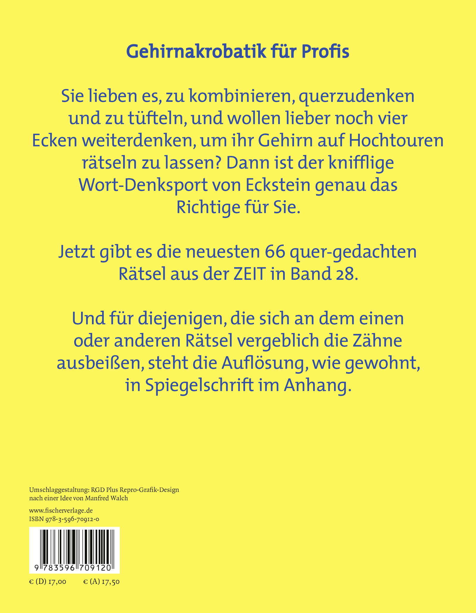 Jetzt gibt es die neuesten 66 quergedachten Rätsel aus der »Zeit« in Band 28. Und für diejenigen, die sich an dem einen oder anderen Rätsel vergeblich die Zähne ausbeißen, steht die Auflösung, wie gewohnt, in Spiegelschrift im Anhang.