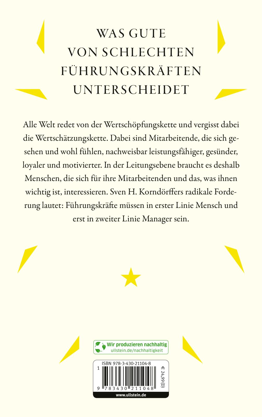 »Mit wachem Geist, mit feiner Feder und sehr persönlichen Beobachtungen untermauert Sven Korndörffer seinen Appell, als Führungskraft stets wertschätzender Mensch zu bleiben oder es zu werden. So lapidar diese Erkenntnis, so weitreichend sind die Folgen. Man stelle sich vor, nicht nur Führungskräfte, und nicht nur solche in Unternehmen, folgten diesem Appell – die Welt wäre ein besserer Ort.«
