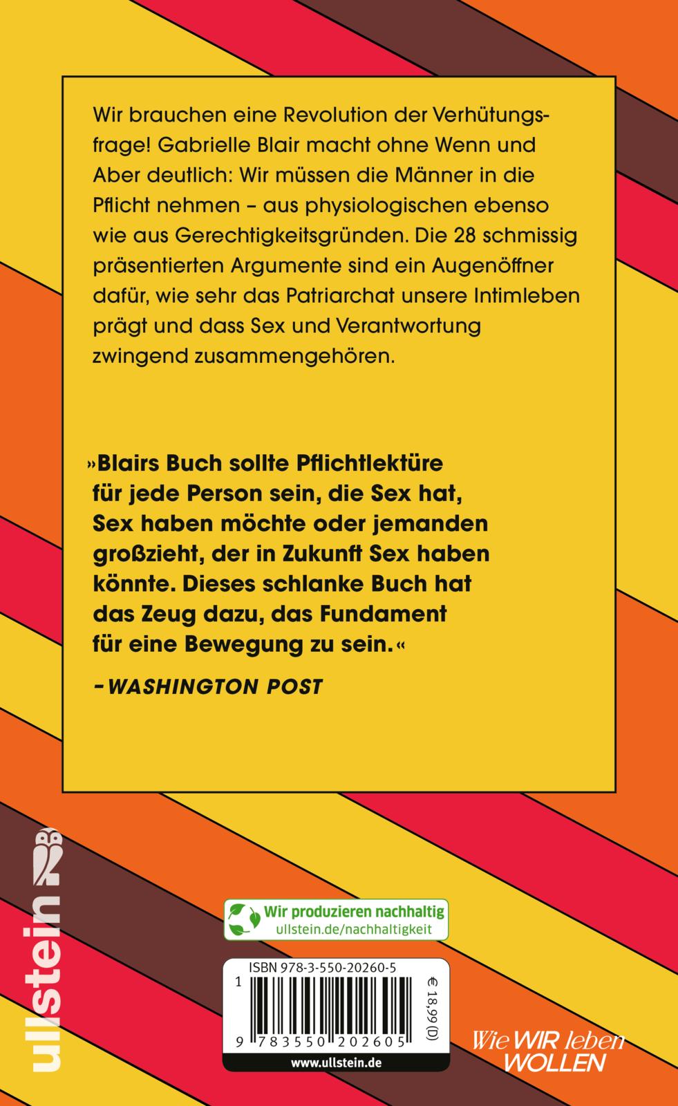 Wir brauchen eine Revolution der Verhütungsfrage! Gabrielle Blair macht ohne Wenn und Aber deutlich: Wir müssen die Männer in die Pflicht nehmen - aus physiologischen ebenso wie aus Gerechtigkeitsgründen. Die 28 schmissig präsentierten Argumente sind ein Augenöffner dafür, wie sehr das Patriarchat unsere Intimleben prägt und dass Sex und Verantwortung zwingend zusammengehören.