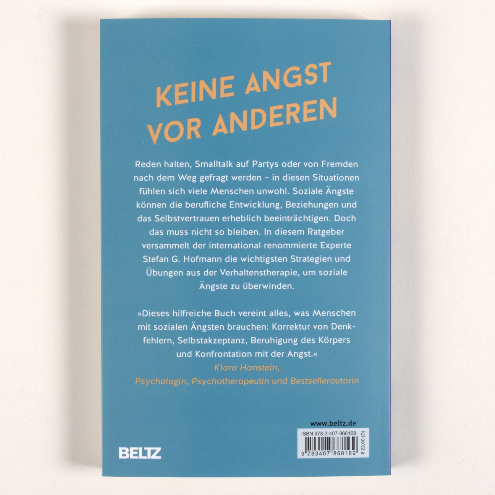 | Schlagworte | Agoraphobie • Akzeptanz • alltagtauglich • Angststörung • Couchpotato • Denkfehler • Depression • Einsamkeit • Exposition • Hemmungen • Hilfe • Introvertiert • KVT • leise • Neurowissenschaften • Panikattacke • Partnersuche • Partys • peinlich • Prüfungsangst • Psychologie • Ratgeber • Redeangst • rot werden • Schneckenhaus • Schüchtern • Selbstbewusstsein • Selbsthilfe • soziale Angst • Soziale Phobie • Strategien • Symptom • Therapie • überwinden • Verhaltenstherapie • verstehen und verändern |