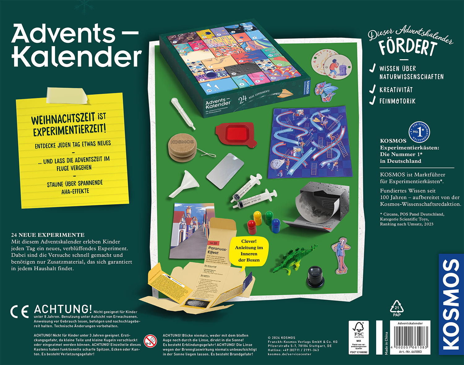 Aufgepasst! Es warten 24 neue Experimente auf Kinder von 8 bis 12 Jahren – der KOSMOS Adventskalender 2024 mit verblüffenden Aha-Momenten!