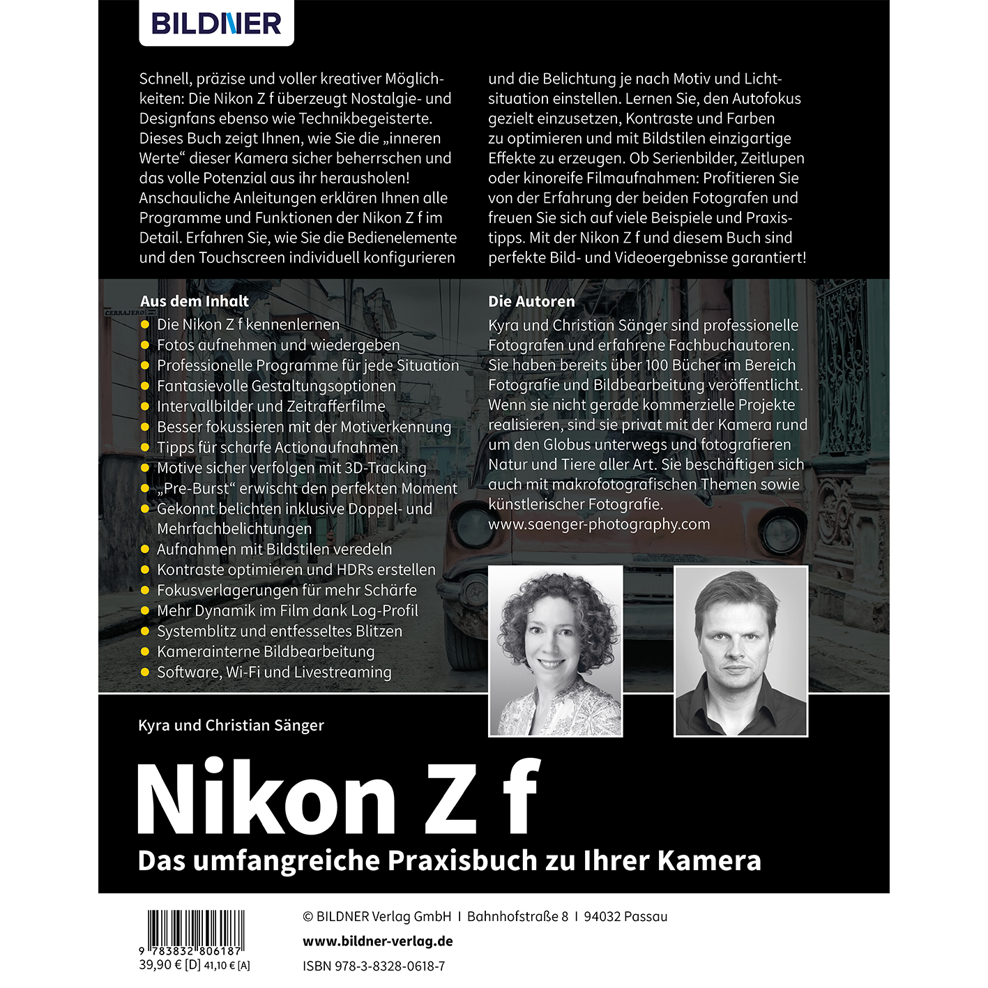 Schnell, präzise und voller kreativer Möglichkeiten: Die Nikon Z f überzeugt Nostalgie- und Designfans ebenso wie Technikbegeisterte. Dieses Buch zeigt Ihnen, wie Sie die „inneren Werte“ dieser Kamera sicher beherrschen und das volle Potenzial aus ihr herausholen! Anschauliche Anleitungen erklären Ihnen alle Programme und Funktionen der Nikon Z f im Detail. Erfahren Sie, wie Sie die Bedienelemente und den Touchscreen individuell konfigurieren und die Belichtung je nach Motiv und Lichtsituation einstellen. Lernen Sie, den Autofokus gezielt einzusetzen, Kontraste und Farben zu optimieren und mit Bildstilen einzigartige Effekte zu erzeugen. Ob Serienbilder, Zeitlupen oder kinoreife Filmaufnahmen: Profitieren Sie von der Erfahrung der beiden Fotografen und freuen Sie sich auf viele Beispiele und Praxistipps. Mit der Nikon Z f und diesem Buch sind perfekte Bild- und Videoergebnisse garantiert!