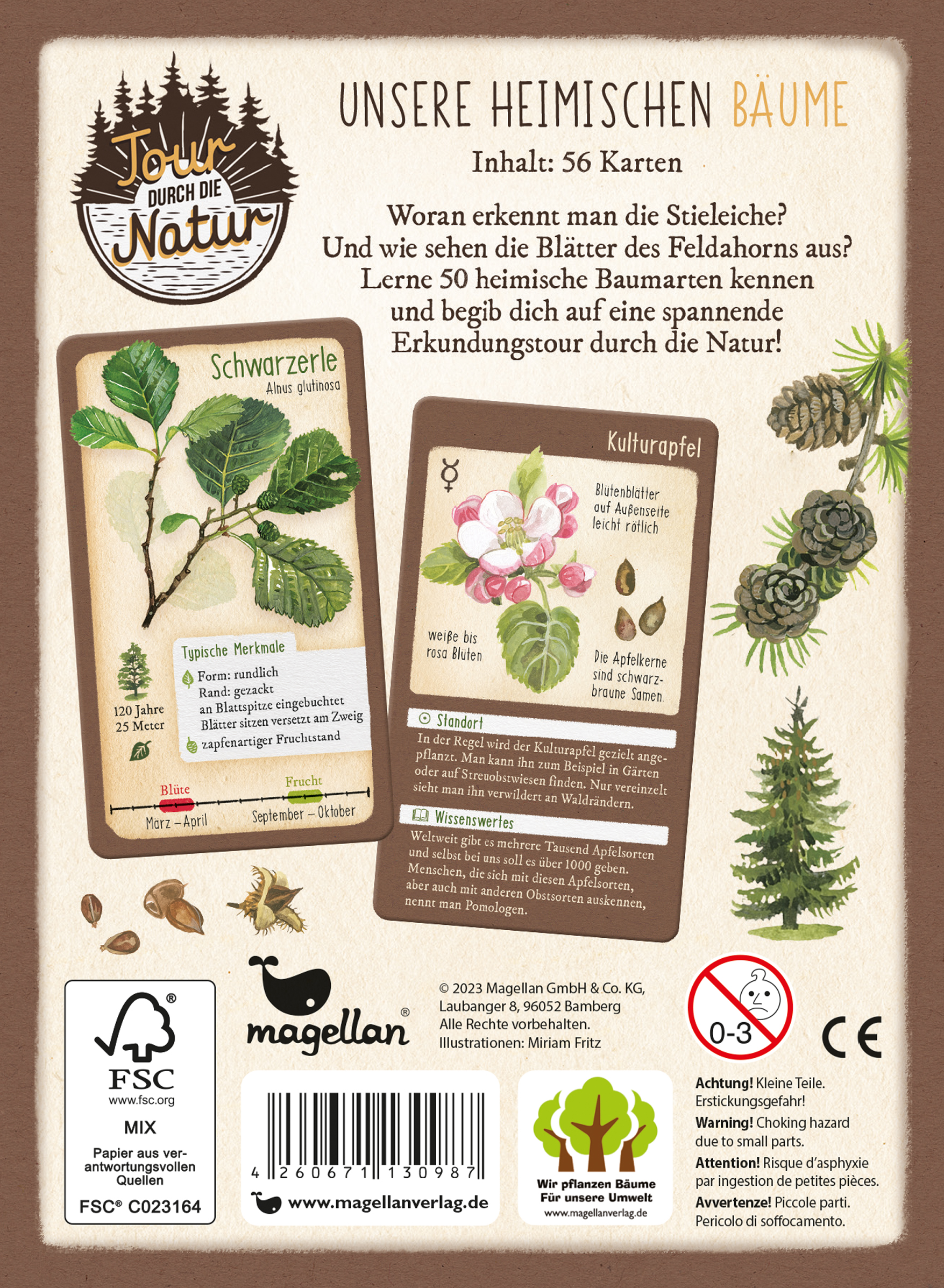 | Schlagworte | Bäume bestimmen • Buche • Eiche • Erle • für unterwegs • Geschenk • Heimische Natur erkunden • Laubbäume • Linde • Mitbringsel • Nadelbäume • Naturkartenset ab 8 Jahren • Naturliebhaber • Naturwissen • Pflanzenbestimmung für Kinder • Sachwissen für unterwegs • Spaziergang • Tanne |