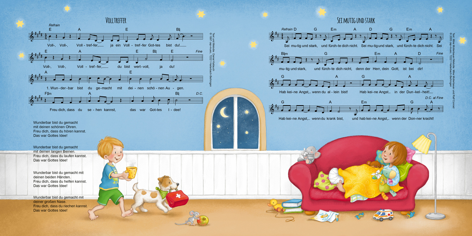 | Schlagworte | Daniel Kallauch • Einfach Spitze • Gottes Liebe • Kinderbuch ab 3 Jahren • Kinderlieder • Kinderliederbuch • Klassiker • Lieder für Kinder • Mike Müllerbauer • Mitmachbuch • Musik • Noten • Pappbilderbuch • Singen • Singen mit Kindern |
