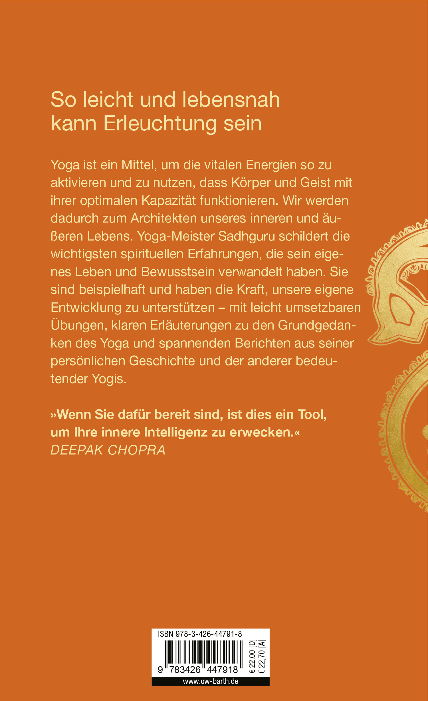 Der international bekannte Yoga-Meister Sadhguru erklärt in seinem Weisheitsbuch die Möglichkeiten zu innerer Transformation. Noch nie hat ein spiritueller Lehrer die Botschaft des Yoga so spannend und unterhaltsam erklärt. Der indische Yoga-Meister ist für unzählige Menschen ein leuchtendes Vorbild.