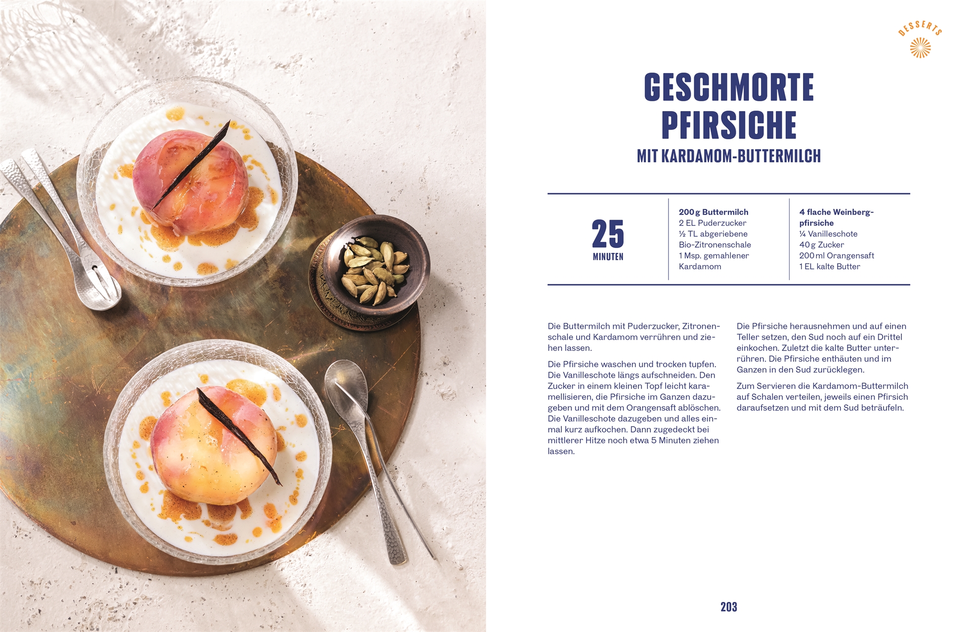 - Originelle Gerichte: Von Aubergine mit Pistazienpesto über Frittata mit Zucchiniblüten bis zum geschmorten Pfirsich mit Karadamom-Buttermilch: So genussvoll kann Alltagsküche sein!