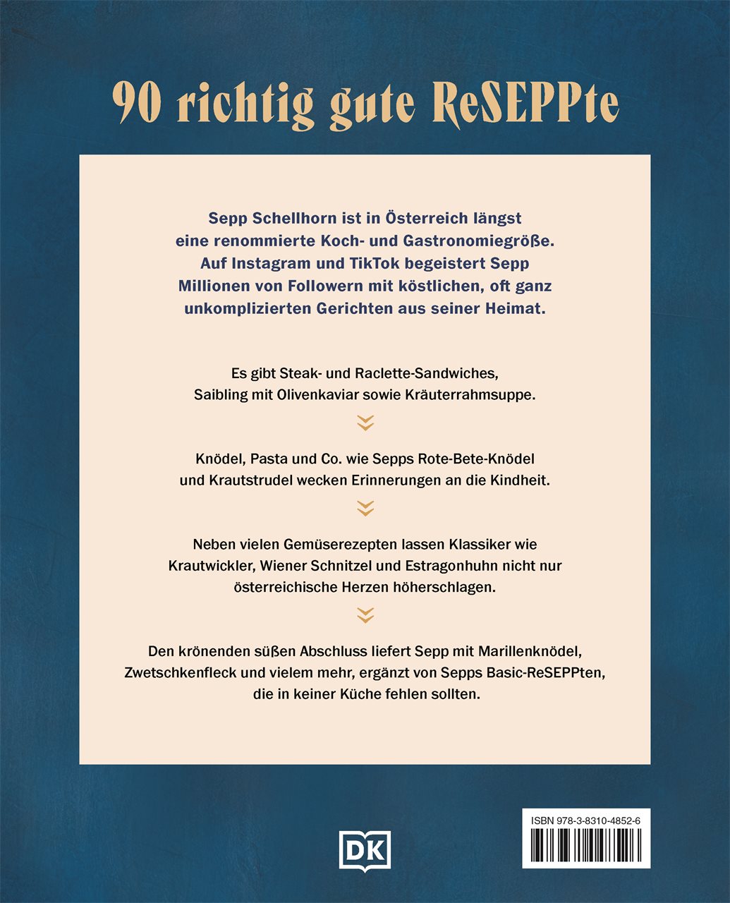 Profikoch und Gastronom Sepp Schellhorn zaubert in seinen kultigen Kochvideos auf TikTok und Instagram köstliche und bodenständige Wohlfühlgerichte aus seiner österreichischen Heimat. Die 90 besten Rezepte seines Kanals präsentiert er nun in einem Buch: Von Alltagsgerichten für die ganze Familie wie vegetarische Knödel über raffinierte Rezepte zum Gäste beeindrucken bis hin zu Klassikern aus der österreichischen Süßspeisen-Welt. Frei nach seinem Motto: "Kochen macht nicht nur sexy, Kochen macht auch Sinn und jede*r kann es!"