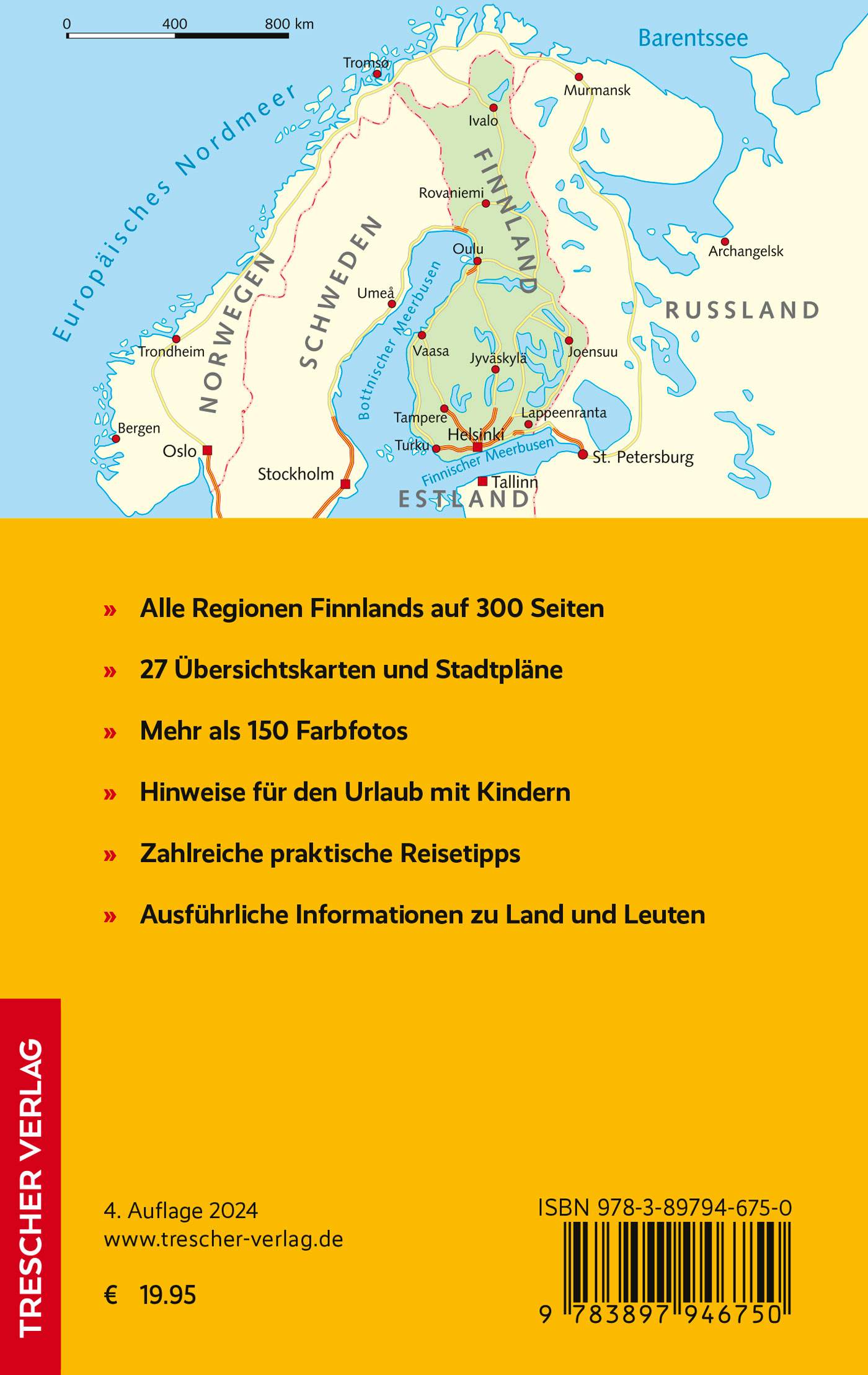 | Schlagworte | Aland Inseln • Empfehlungen • Europa • Fähren • Finnisch • finnischer Meerbusen • Finnische Seenplatte • Finnland • Karelien • Lahti • Landeskunde • Lappland • Mitternachtssonne • Nordeuropa • Nordkap • Nordlichter • Oulu • Pielinen • Polarkreis • Praktische Informationen • Reisetipps • Reisevorbereitung • Sauna • Schärenküste • Skandinavien • Südfinnland • Tampere • Trescher-Reiseführer • Trescher Verlag • Turku • Urlaub • Vaasa • Wandern • Wohnmobil |