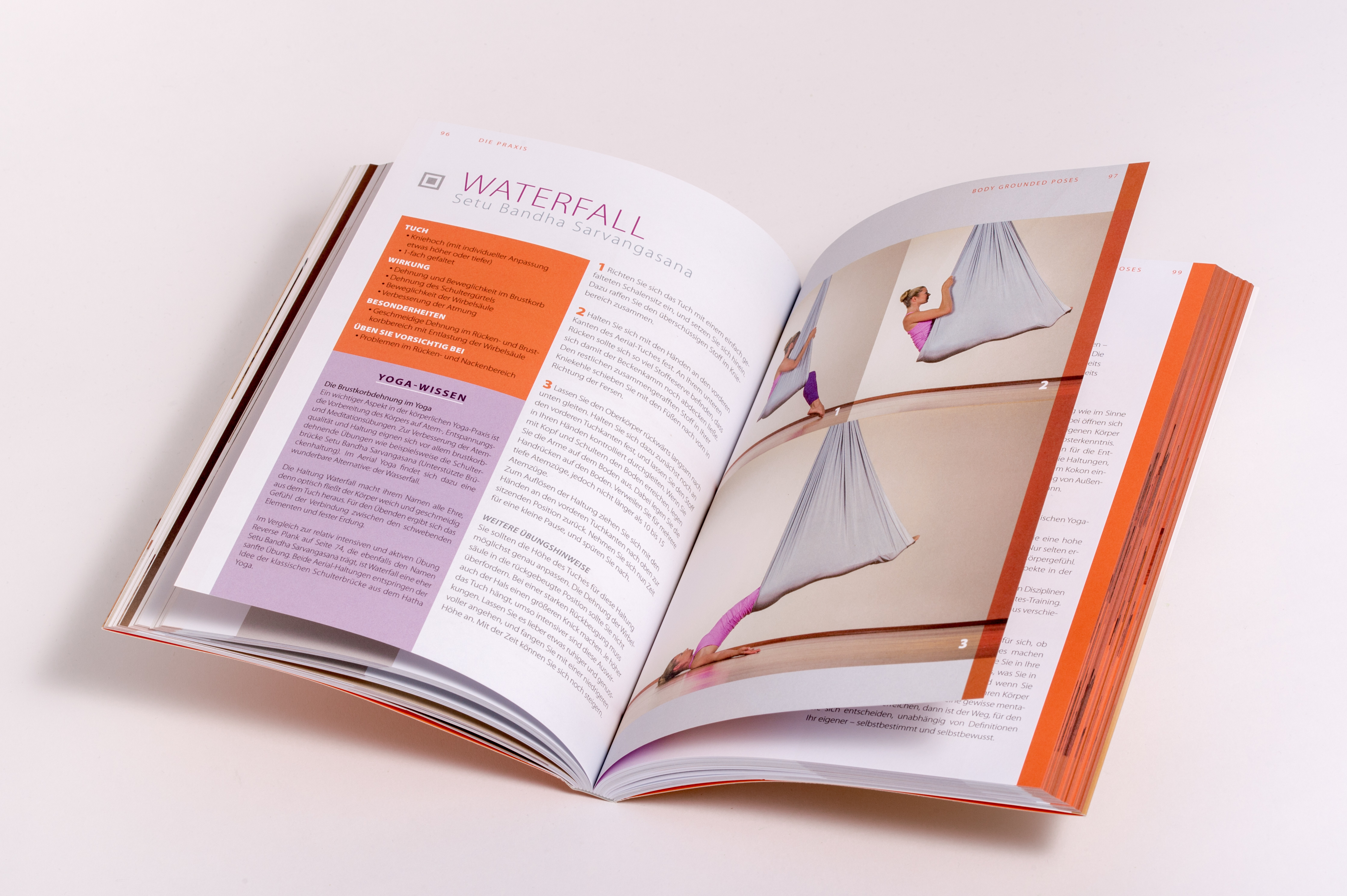 Mittlerweile wird Aerial Yoga in zahlreichen großen Studios angeleitet und wenn man erst einmal die Grundlagen drauf hat, steht auch einem selbständigen Training zu Hause nichts mehr im Wege. Damit das perfekt gelingt, führen die beiden Aerial-Yoga-Profis Wolfgang Mießner und Peter Schlösser Schritt für Schritt in die Grundlagen ein.