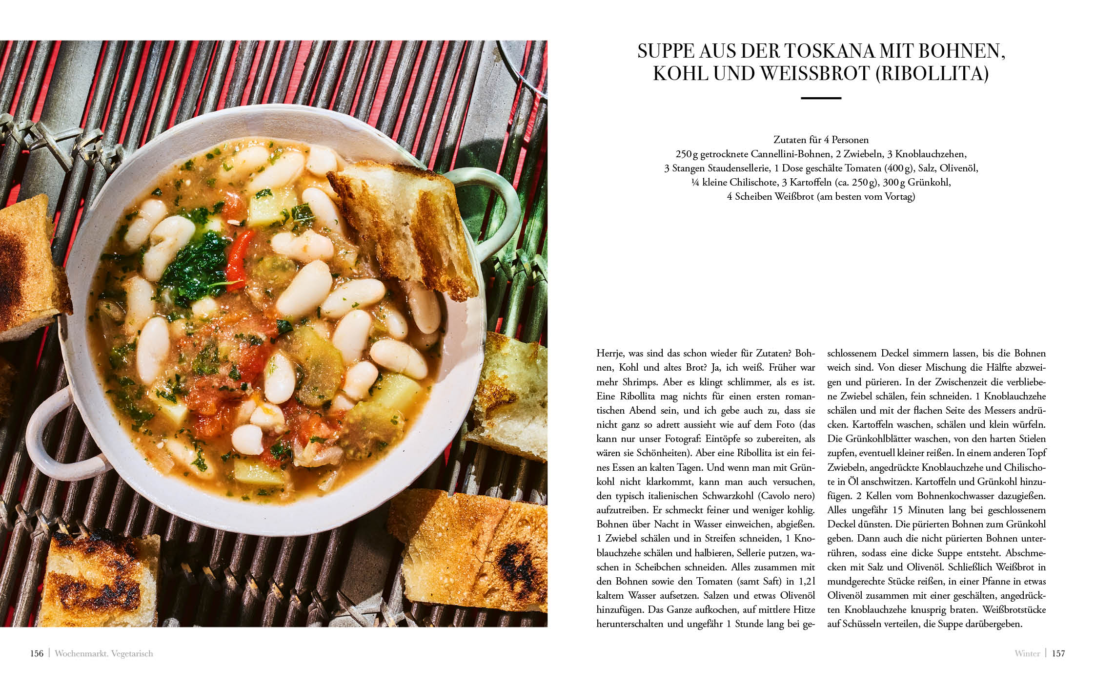 Elisabeth Raether zeigt in ihrer beliebten Kochkolumne »Wochenmarkt« im ZEITmagazin, was sie nach einem Spaziergang über den Markt aus frischen, saisonalen Zutaten zubereitet. Aus Mangold, Karotten, Chicorée und Kürbis werden hervorragende vegetarische Gerichte, dafür braucht es gar keine langen Zutatenlisten oder komplizierte Küchentechniken.Im Frühling gibt es geschmorte Radieschen, im Sommer Zucchini - und zwar in jeder Form, als Pesto, Risotto und Gratin. Traditionelle Gemüsesorten wie Zwiebel oder Kohl lassen sich im Herbst in zeitgemäßen Gerichten wie einem Weißkohlgratin mit Maronen in Szene setzen. Und auch im Winter geben die Marktstände viel mehr her, als man denkt. So wird aus Schwarzkohl eine köstliche Lasagne - echtes Comfort-Food. Gemüse spielt dabei immer die Hauptrolle - auf dem Teller und in Elisabeth Raethers pointierten und lebendigen Texten.