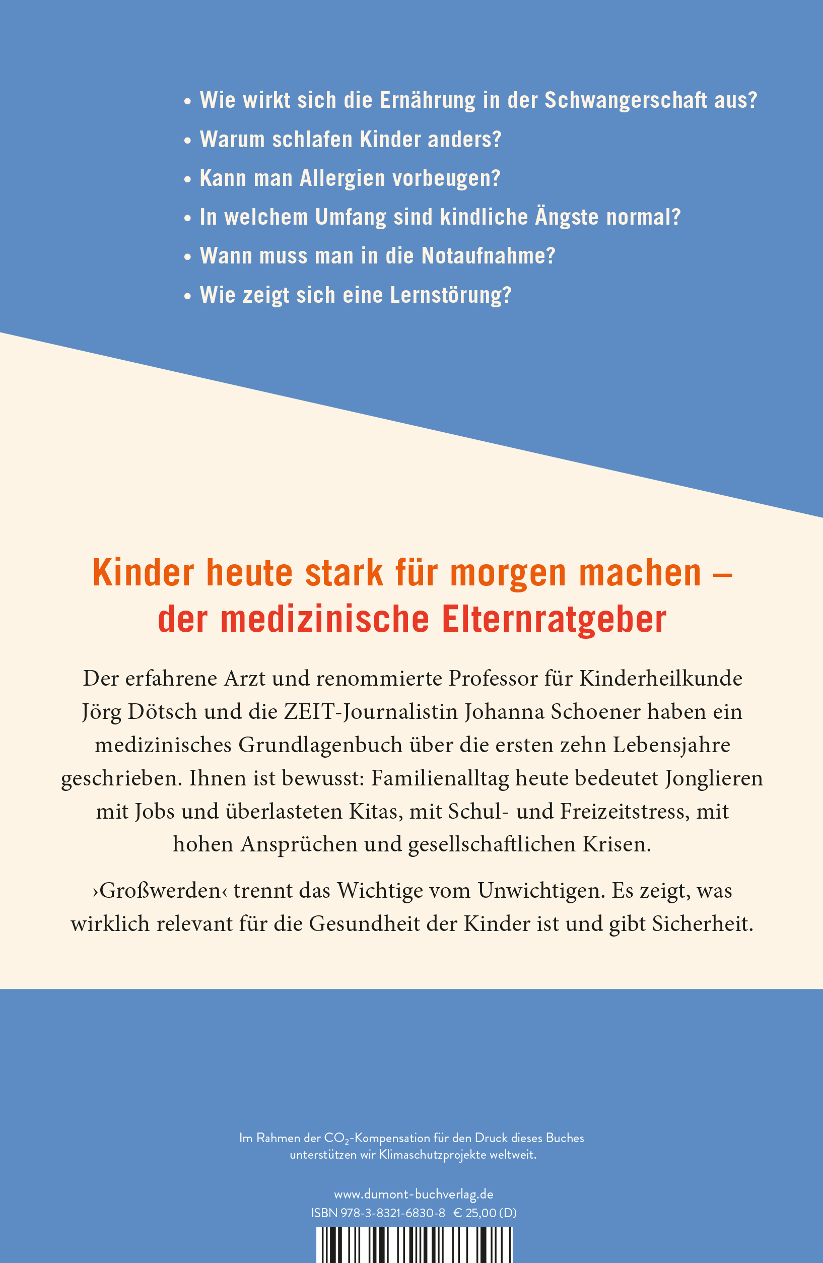 Kinder haben heute die besten Chancen, gesund aufzuwachsen. Dennoch scheint es kompliziert wie nie, sie dabei zu begleiten. Wie bleibt man souverän, wenn das Baby immerzu schreit und das Netz lauter widersprüchliche Dinge empfiehlt? Wie unterscheidet man seriöse Hinweise von flüchtigen Trends? Was hilft bei Krankheiten? Der erfahrene Pädiater und renommierte Professor für Kinderheilkunde Jörg Dötsch und die langjährige ZEIT-Bildungsjournalistin Johanna Schoener haben ein modernes medizinisches Grundlagenbuch für die ersten zehn Lebensjahre geschrieben.