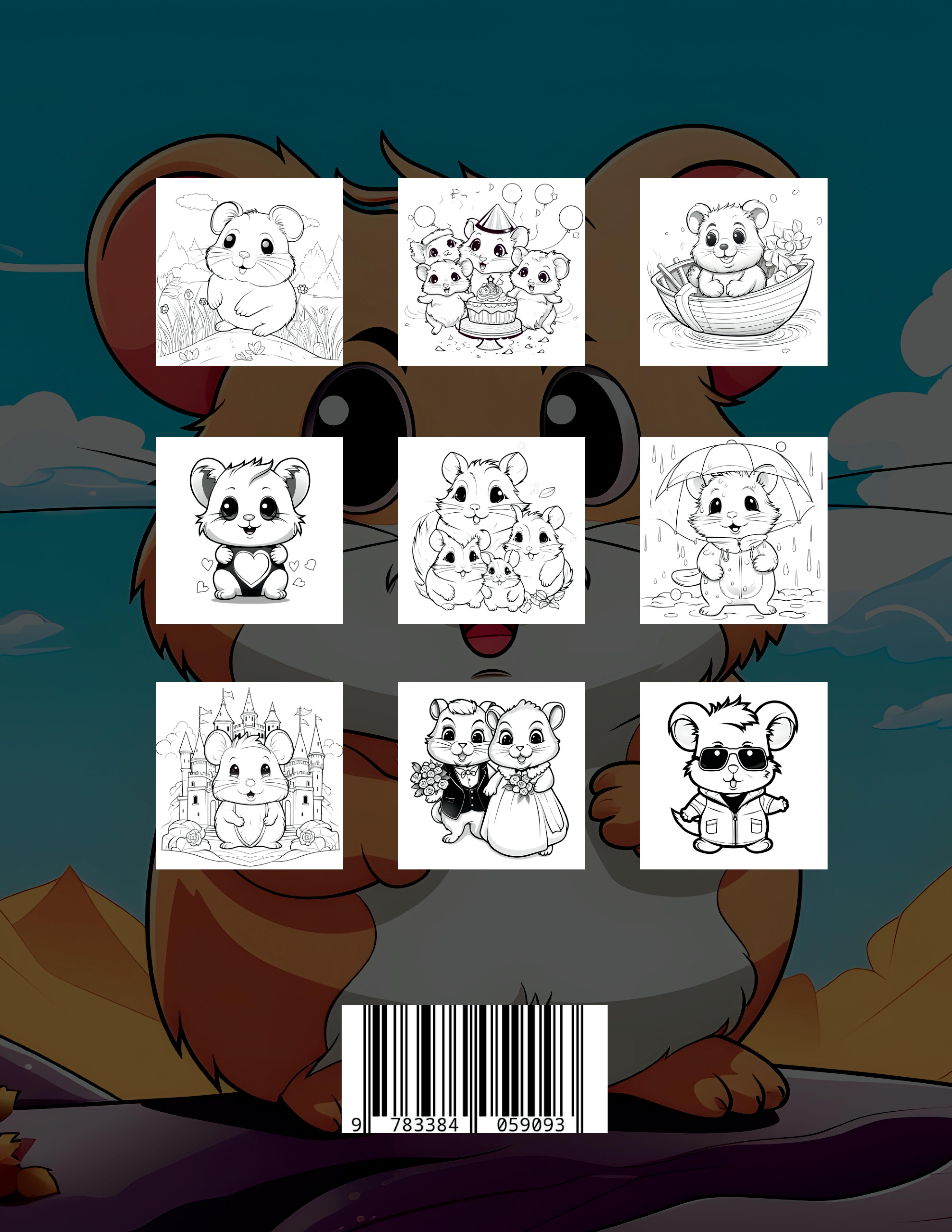 Hamster Malbuch mit wunderschönen Vorlagen im Cartoon Stil. Hamstermalbuch. Hamster Malbuch.