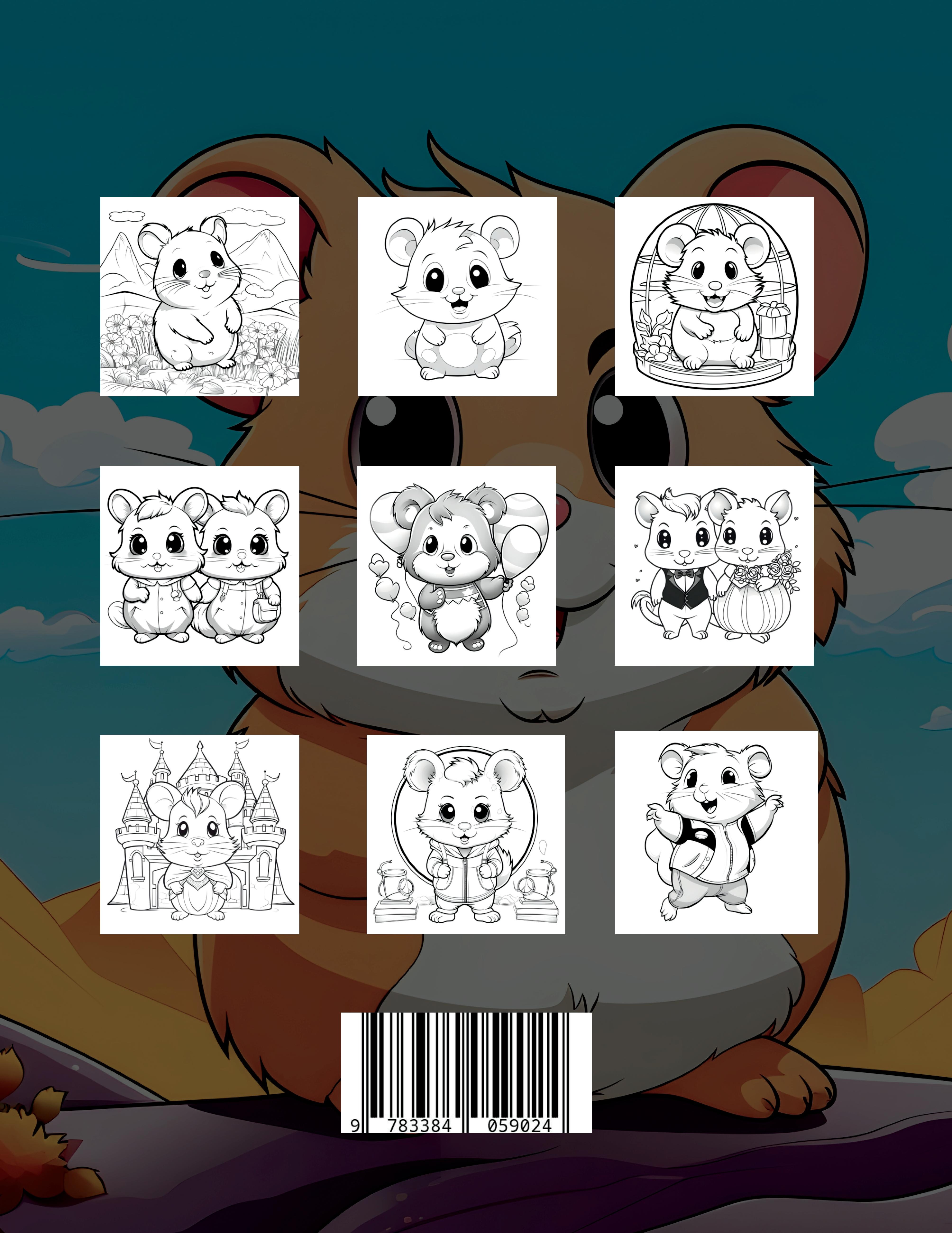 Hamstermalbuch mit wunderschönen Vorlagen im Cartoon Stil. Malbuch Hamster. Hamstermalbuch.