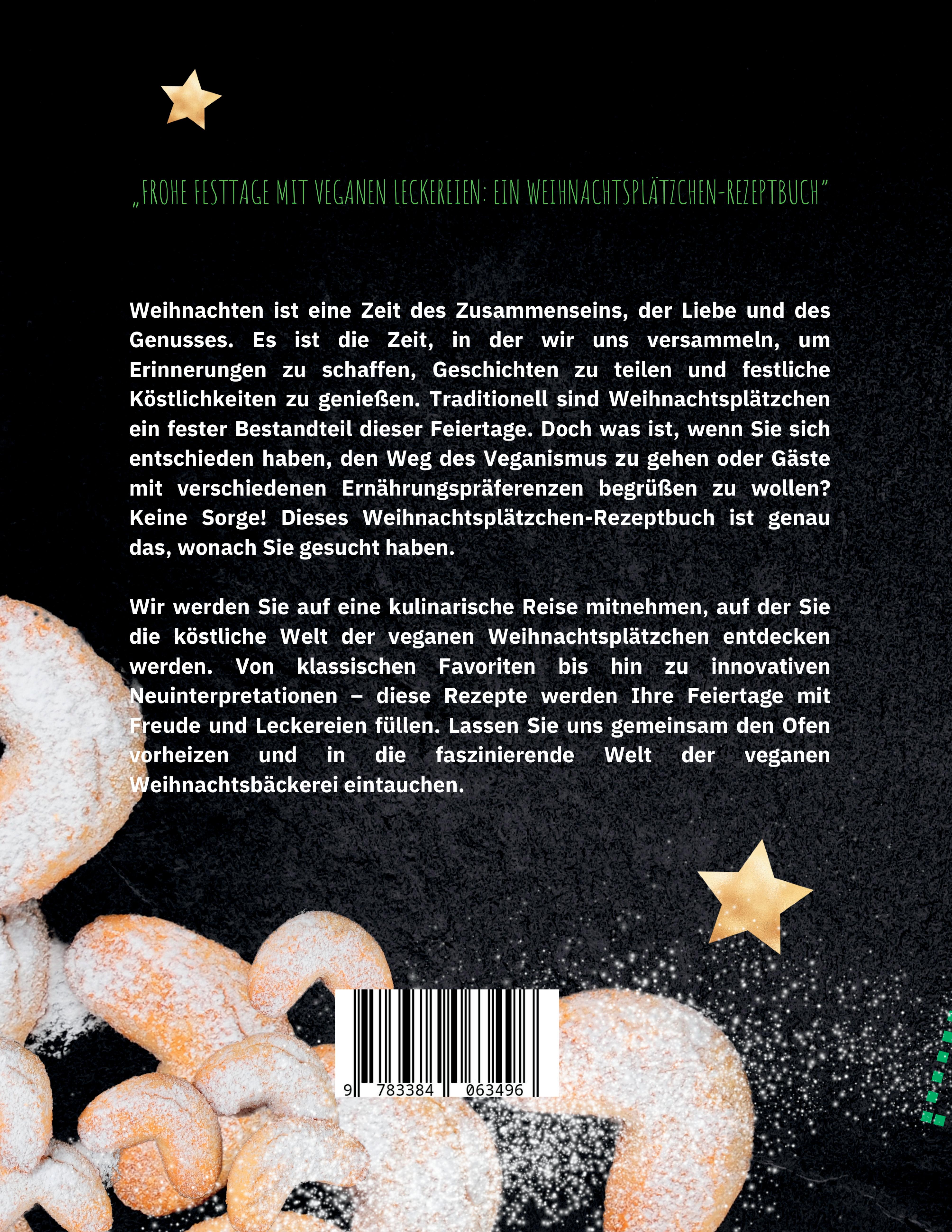 Weihnachtsplätzchen Vegan- Premiumqualität mit tollen Farbfotos."Frohe Festtage mit veganen Leckereien: Ein Weihnachtsplätzchen-Rezeptbuch"Weihnachten ist eine Zeit des Zusammenseins, der Liebe und des Genusses. Es ist die Zeit, in der wir uns versammeln, um Erinnerungen zu schaffen, Geschichten zu teilen und festliche Köstlichkeiten zu genießen. Traditionell sind Weihnachtsplätzchen ein fester Bestandteil dieser Feiertage. Doch was ist, wenn Sie sich entschieden haben, den Weg des Veganismus zu gehen oder Gäste mit verschiedenen Ernährungspräferenzen begrüßen zu wollen? Keine Sorge! Dieses Weihnachtsplätzchen-Rezeptbuch ist genau das, wonach Sie gesucht haben.Wir werden Sie auf eine kulinarische Reise mitnehmen, auf der Sie die köstliche Welt der veganen Weihnachtsplätzchen entdecken werden. Von klassischen Favoriten bis hin zu innovativen Neuinterpretationen - diese Rezepte werden Ihre Feiertage mit Freude und Leckereien füllen. Lassen Sie uns gemeinsam den Ofen vorheizen und in die faszinierende Welt der veganen Weihnachtsbäckerei eintauchen.Eckdaten:- Premiumqualität, 170g Papier- Tolle Farbfotos- 40 Plätzchen Rezepte, von klassisch bis innovativ- Format: 17x22cm
