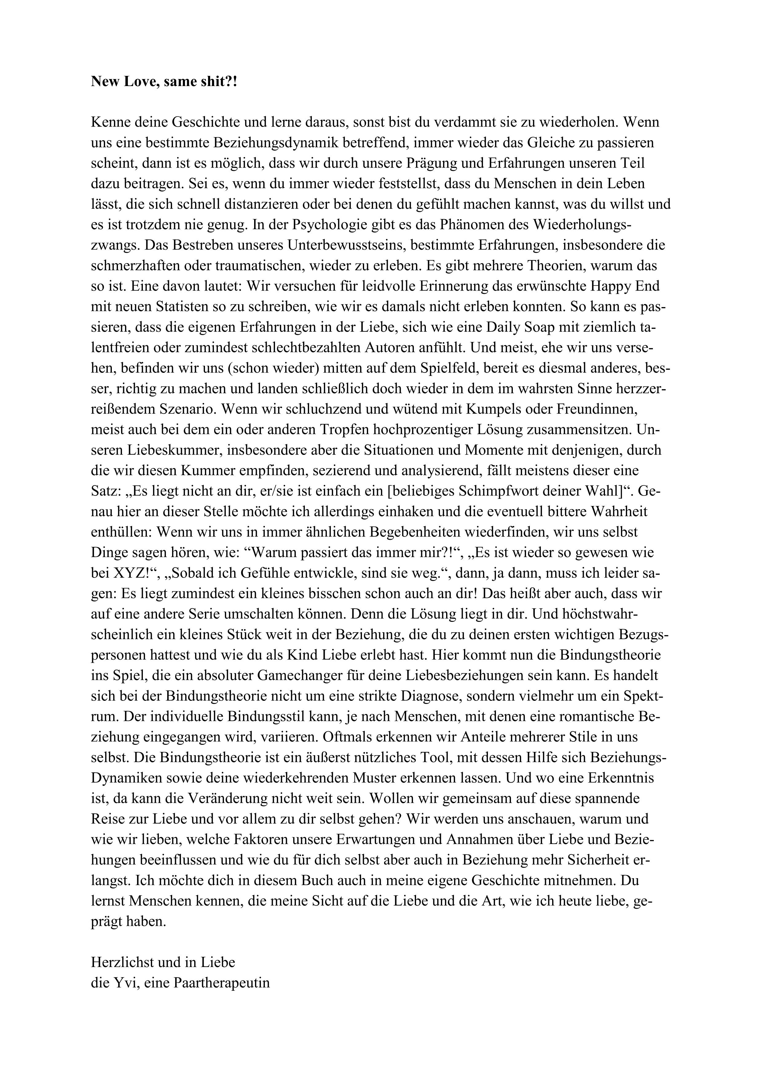 Hinweis zur OptimierungImpressumWichtiger HinweisEin paar Worte vorabWie alles begannDas erwartet dichDie Playlist zum BuchWarum lieben wir, wie wir es tun?Die Bindungstheorie als WunderwaffeAlles toxisch oder wie oder was?Friede, Freude, ReboundWenn gemeinsame Wege endenIch liebe lieber dich oder doch vielleicht nur michZutaten für eine glückliche BeziehungQuellen und ErläuterungenYvi Blum