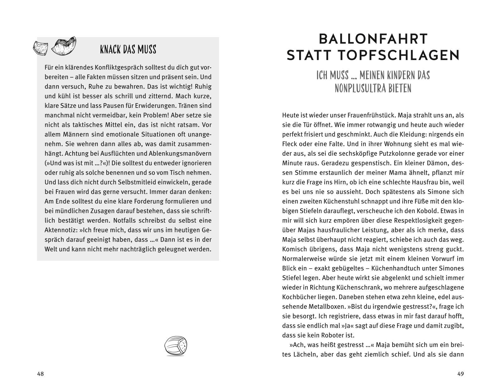 Hinweis zur OptimierungImpressumKnack das muss!VorwortDas UnterhosendingWie riecht eigentlich Hausarbeit?Wir reisen, ich planeSo weit die Füße tragen ...Kampf der SUV-MomsSandkastenspieleWer führt das große Wort?Mein Chef (gemein)Mein Chef (Heulsuse)Ballonfahrt statt Topfschlagen«Für mich nur eine kleine Portion, bitte!«»Ich brauche keinen Kalender, ich hab ja meine Frau.«Zwei Söhne, drei JungsNicht zu groß und nicht zu schlauVerbohrt»Komm, wir räumen um!«»Wie soll ich das alles schaffen?«Oh weh! Lebensgefahr! Klassenfahrt!Läuft ...»Immer mit Pfiff, unsere Damen«Linedance oder Gaelic Football?Mutter-Kind oder Kur?FeminismuskomplikationenEmma Thompson und der BegrüßungssatzEMMA oder Omma?Karriere oder Kind?Ich als Frau muss doch ...Die neue MajaEin Schutzraum zum Denken wär' schön»Hilfst du mir mal schnell in der Küche?«Die LächelmaskeIch darf ... ich selbst seinStatt eines NachwortsMarie Brunner