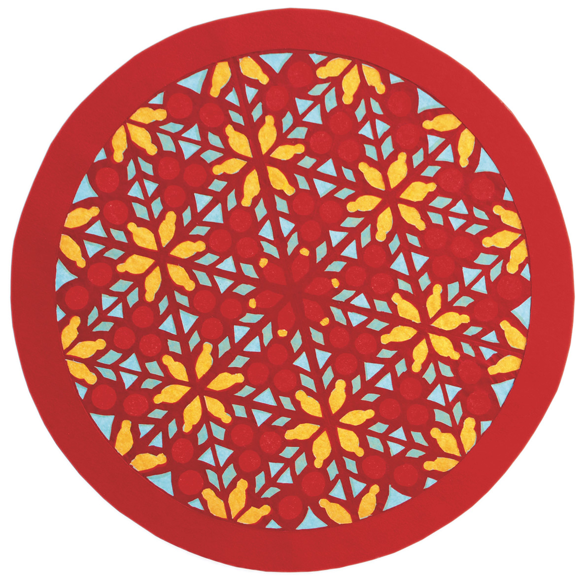 Neben den Anleitungen zu Fensterrosetten bekannter Kirchen (z.B. den Kathedralen von Chartres, Notre-Dame de Paris, Lausanne, Nürnberg oder Assisi) entwickelt sie ganz eigene Kreationen, angelehnt an die Blatt- und Blütenvielfalt der Natur (z.B. eine Limettenscheibe, wirbelnde Ginkgo-Blätter, eine leuchtende Calendula-Sonne …). Wer gern mit Farben und Formen, Licht und Geometrie spielt und dekorative Transparente für Wohn- oder Kinderzimmerfenster gestaltet, findet hier eine reiche Auswahl an Motiven – passend zu allen Jahreszeiten und in verschiedenen Schwierigkeitsgraden.