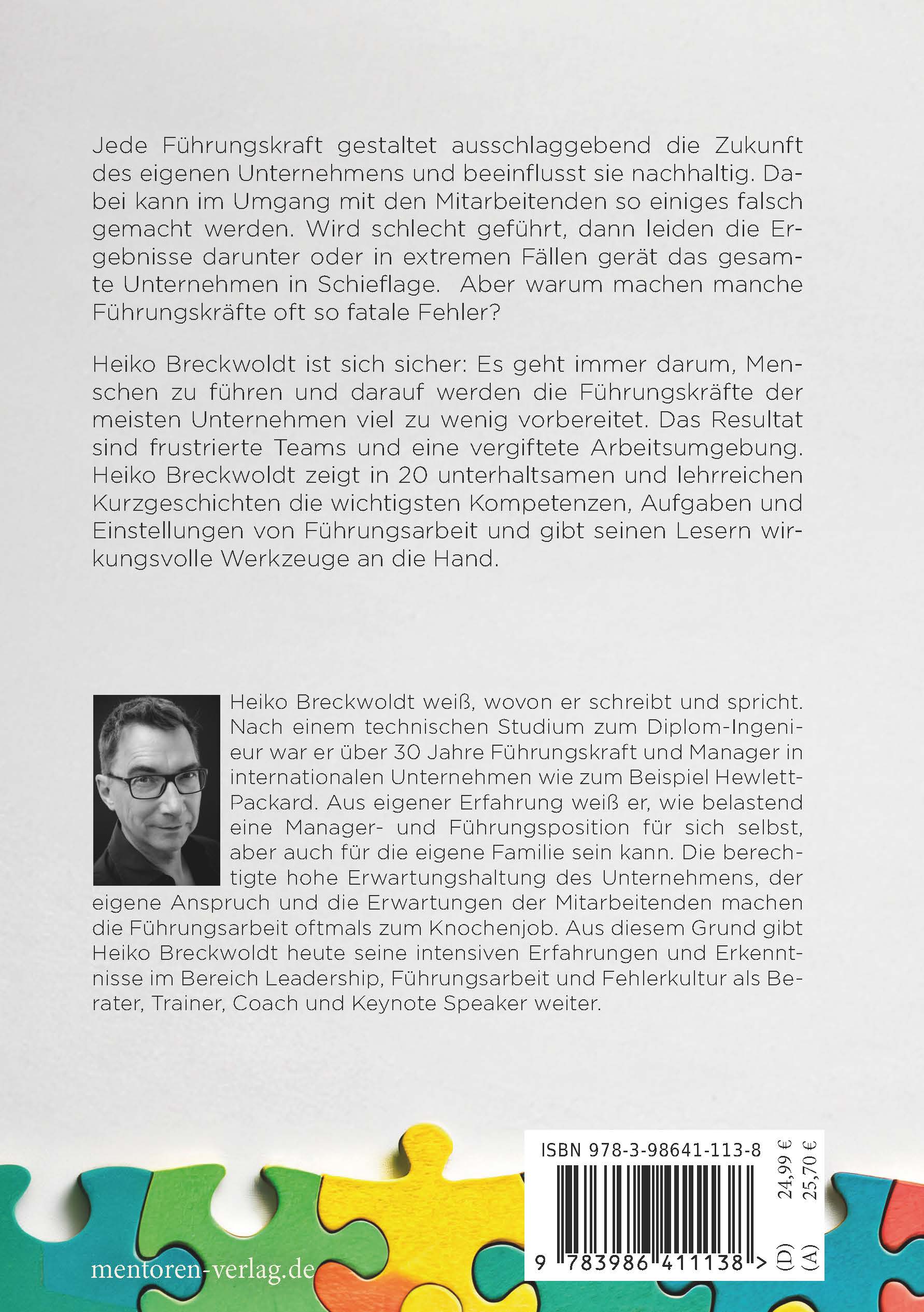 Heiko Breckwoldt weiß, wovon er schreibt und spricht. Nach einem technischen Studium zum Diplom-Ingenieur war er über 30 Jahre Führungskraft und Manager in internationalen Unternehmen wie zum Beispiel Hewlett-Packard. Aus eigener Erfahrung weiß er, wie belastend eine Manager- und Führungsposition für sich selbst, aber auch für die eigene Familie sein kann. Die berechtigte hohe Erwartungshaltung des Unternehmens, der eigene Anspruch und die Erwartungen der Mitarbeitenden machen die Führungsarbeit oftmals zum Knochenjob. Aus diesem Grund gibt Heiko Breckwoldt heute seine intensiven Erfahrungen und Erkenntnisse im Bereich Leadership, Führungsarbeit und Fehlerkultur als Berater, Trainer, Coach und Keynote Speaker weiter.