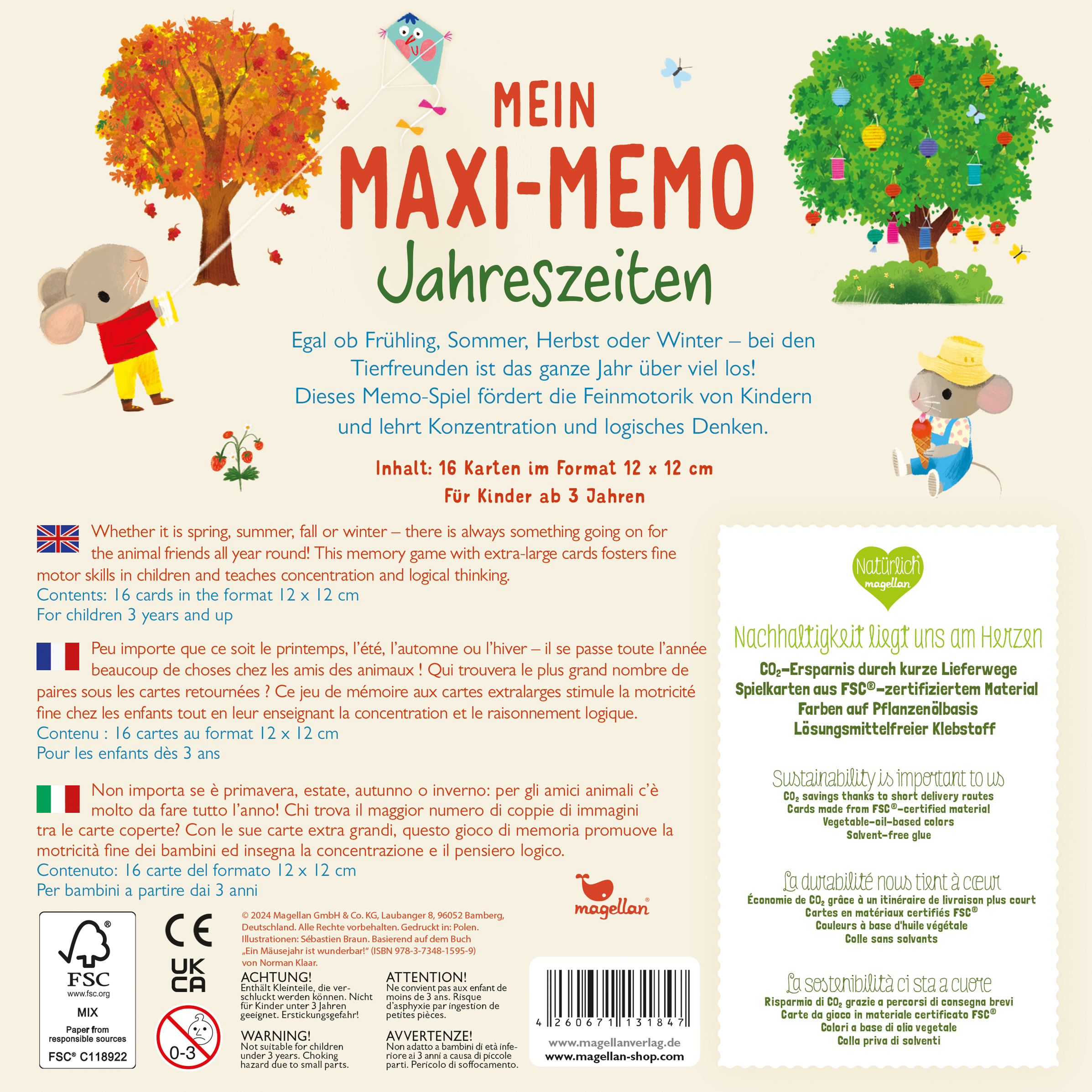 | Schlagworte | Drachensteigen • Ein Hasentag • Ein Mäusejahr • Eis essen • Frühling • Gärtnern • Gedächtnisspiel • Geschenk für Jungs • Geschenk für Mädchen • Herbst • Legespiel • Lernspiel • Logik trainieren • Mitbringsel • Sankt Martin • Schlittschulaufen • Schneeballschlacht • Sommer • Tier-Freunde • Winter |