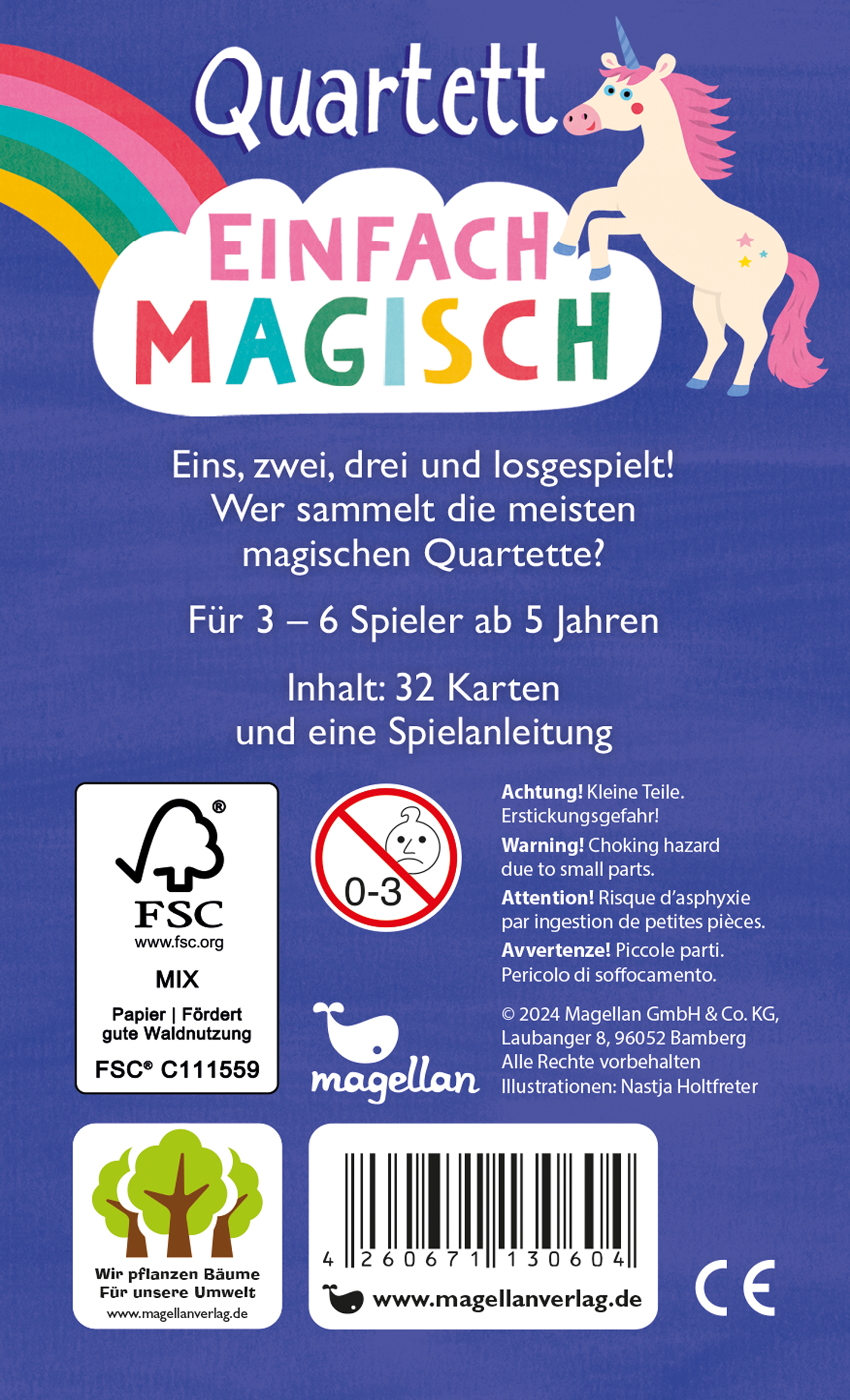 | Schlagworte | Drache • Einhorn • Fabelwesen • Fantasie • farbenfroh • Fee • für Mädchen • Holtfreter Quartette • Kartenspiel 2 bis 4 Spieler • Klassiches Quartett • Meerjungfrau • Spiel für die ganze Familie • Wichtel |