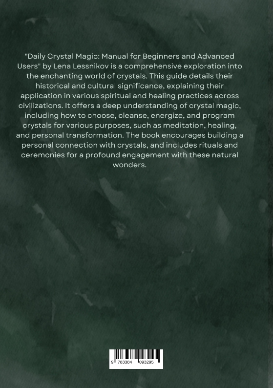 "Daily Crystal Magic: Manual for Beginners and Advanced Users" by Lena Lessnikov is a comprehensive exploration into the enchanting world of crystals. This guide details their historical and cultural significance, explaining their application in various spiritual and healing practices across civilizations. It offers a deep understanding of crystal magic, including how to choose, cleanse, energize, and program crystals for various purposes, such as meditation, healing, and personal transformation. The book encourages building a personal connection with crystals, and includes rituals and ceremonies for a profound engagement with these natural wonders.