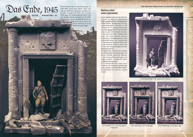 Das Buch beinhaltet eine exklusive Auswahl an Dioramen und Vignetten zum Thema Deutsche Wehrmacht im 2. Weltkrieg. Praktische Schritt-für-Schritt-Anleitungen demonstrieren das Modellieren, Zusammenbauen, Figurenbemalen und Gestalten von erstklassigen Dioramen.Vorgestellt werden Dioramen zu den Themen:- U-BOOT VII C, 1940, Bau eines Marinedioramas (1:72)- DER WÜSTENFUCHS, 1941, Präsentation einer Einzelfigur (54 mm)- STUKA, 1943, Diorama (1:48)- BARBAROSSA, 1941, Bau eines Großdioramas (54 mm)- ADOLF GALLAND, 1940, Bemalung einer Büste (1:10)- PARIS, 1940, Schaukasten-Diorama mit Innenbeleuchtung (54 mm) - DIE "FEUERPAUSE", 1942, Figuren-Umbau (90 mm)- DAS ENDE, 1945, Einzelfigur mit Ruinenlandschaft (54 mm)