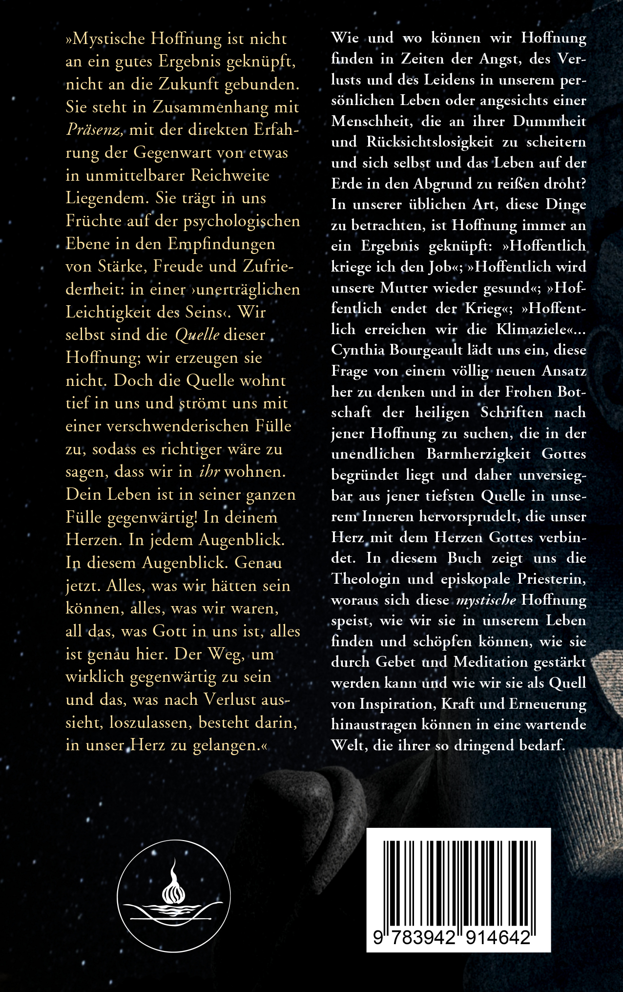 Cynthia Bourgeault lädt uns ein, diese Frage von einem völlig neuen Ansatz her zu denken und in der Frohen Botschaft der heiligen Schriften nach jener Hoffnung zu suchen, die in der unendlichen Barmherzigkeit Gottes begründet liegt und daher unversiegbar aus jener tiefsten Quelle in unserem Inneren hervorsprudelt, die unser Herz mit dem Herzen Gottes verbindet.