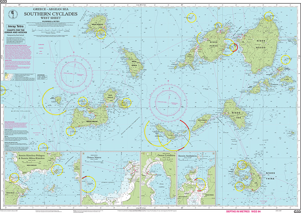 Imray-Tetra charts for the Ionian and Aegean are widely acknowledged as the best available for the cruising sailor. They combine the latest official survey data with first-hand information gathered by Rod and Lucinda Heikell. The chart is designed to be used alongside Imray pilot guides of the area. Like all Imray charts, they are printed on water resistant Pretex paper for durability, and they include many anchorages, facilities and inlets not included on official charts.