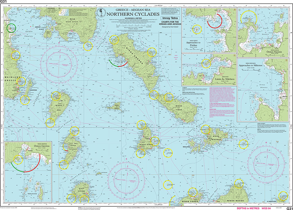 Imray-Tetra charts for the Ionian and Aegean are widely acknowledged as the best available for the cruising sailor. They combine the latest official survey data with first-hand information gathered by Rod and Lucinda Heikell. The chart is designed to be used alongside Imray pilot guides of the area. Like all Imray charts, they are printed on water resistant Pretex paper for durability, and they include many anchorages, facilities and inlets not included on official charts.