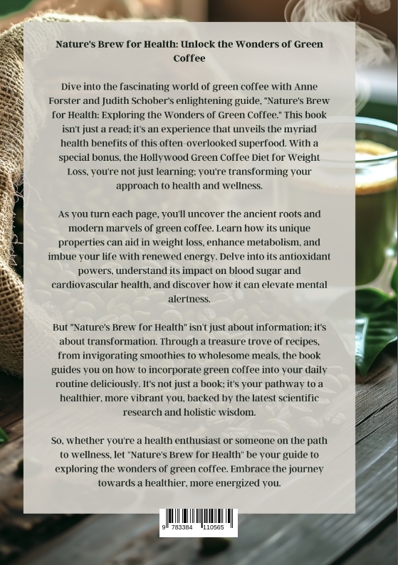 Nature's Brew for Health: Unlock the Wonders of Green CoffeeDive into the fascinating world of green coffee with Anne Forster and Judith Schober's enlightening guide, "Nature's Brew for Health: Exploring the Wonders of Green Coffee." This book isn't just a read; it's an experience that unveils the myriad health benefits of this often-overlooked superfood. With a special bonus, the Hollywood Green Coffee Diet for Weight Loss, you're not just learning; you're transforming your approach to health and wellness.As you turn each page, you'll uncover the ancient roots and modern marvels of green coffee. Learn how its unique properties can aid in weight loss, enhance metabolism, and imbue your life with renewed energy. Delve into its antioxidant powers, understand its impact on blood sugar and cardiovascular health, and discover how it can elevate mental alertness.But "Nature's Brew for Health" isn't just about information; it's about transformation. Through a treasure trove of recipes, from invigorating smoothies to wholesome meals, the book guides you on how to incorporate green coffee into your daily routine deliciously. It's not just a book; it's your pathway to a healthier, more vibrant you, backed by the latest scientific research and holistic wisdom.So, whether you're a health enthusiast or someone on the path to wellness, let "Nature's Brew for Health" be your guide to exploring the wonders of green coffee. Embrace the journey towards a healthier, more energized you.