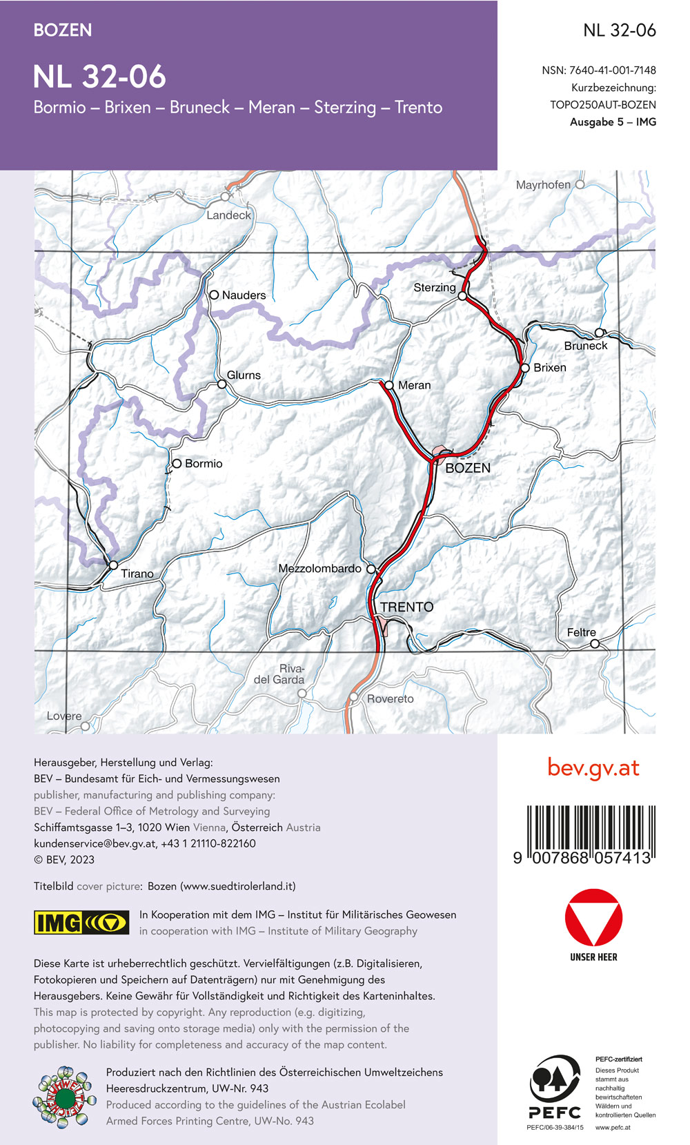 BEV-Karte NL 32-06, Bozen 1:250 000