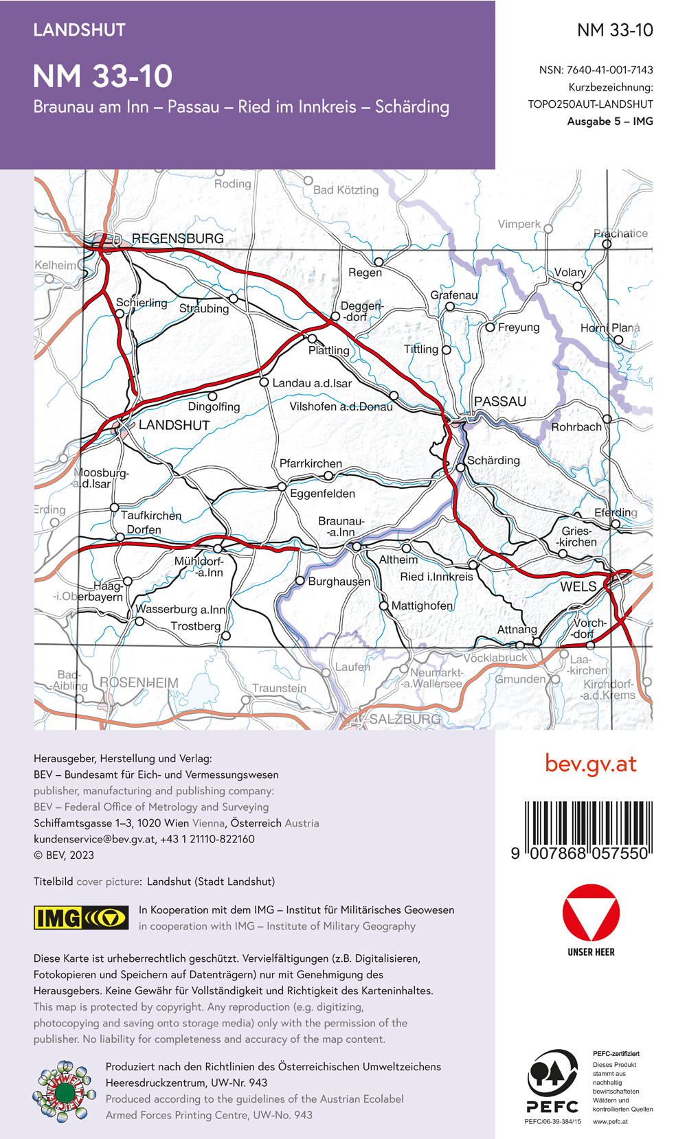 BEV-Karte NM 33-10, Landshut 1:250 000