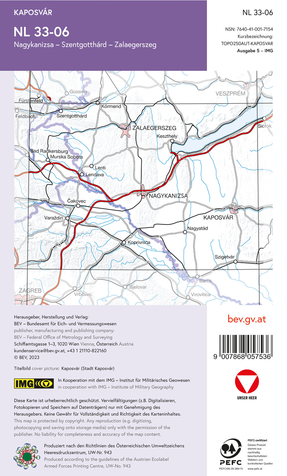 BEV-Karte NL 33-06, Kaposvar 1:250 000