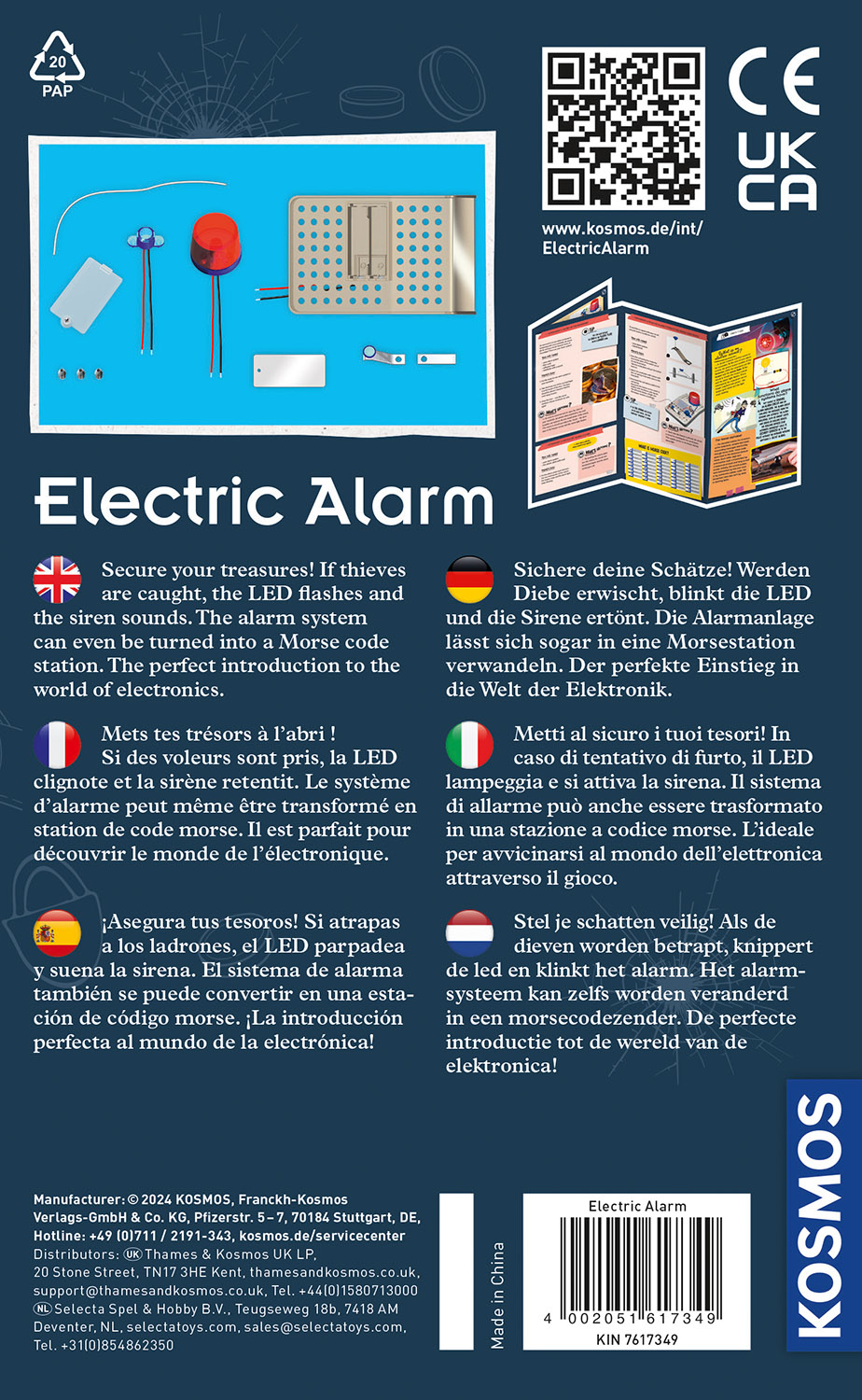 | Schlagworte | Alarmanlage • bausatz kinder • beschaeftigung • elektro baukasten • Experiment • Experimente für Kinder ab 8 • Forschen • Geburtstagsgeschenk • kosmos experimente • kosmos experimentierkasten • kosmos forscherset • Mitbringsel |