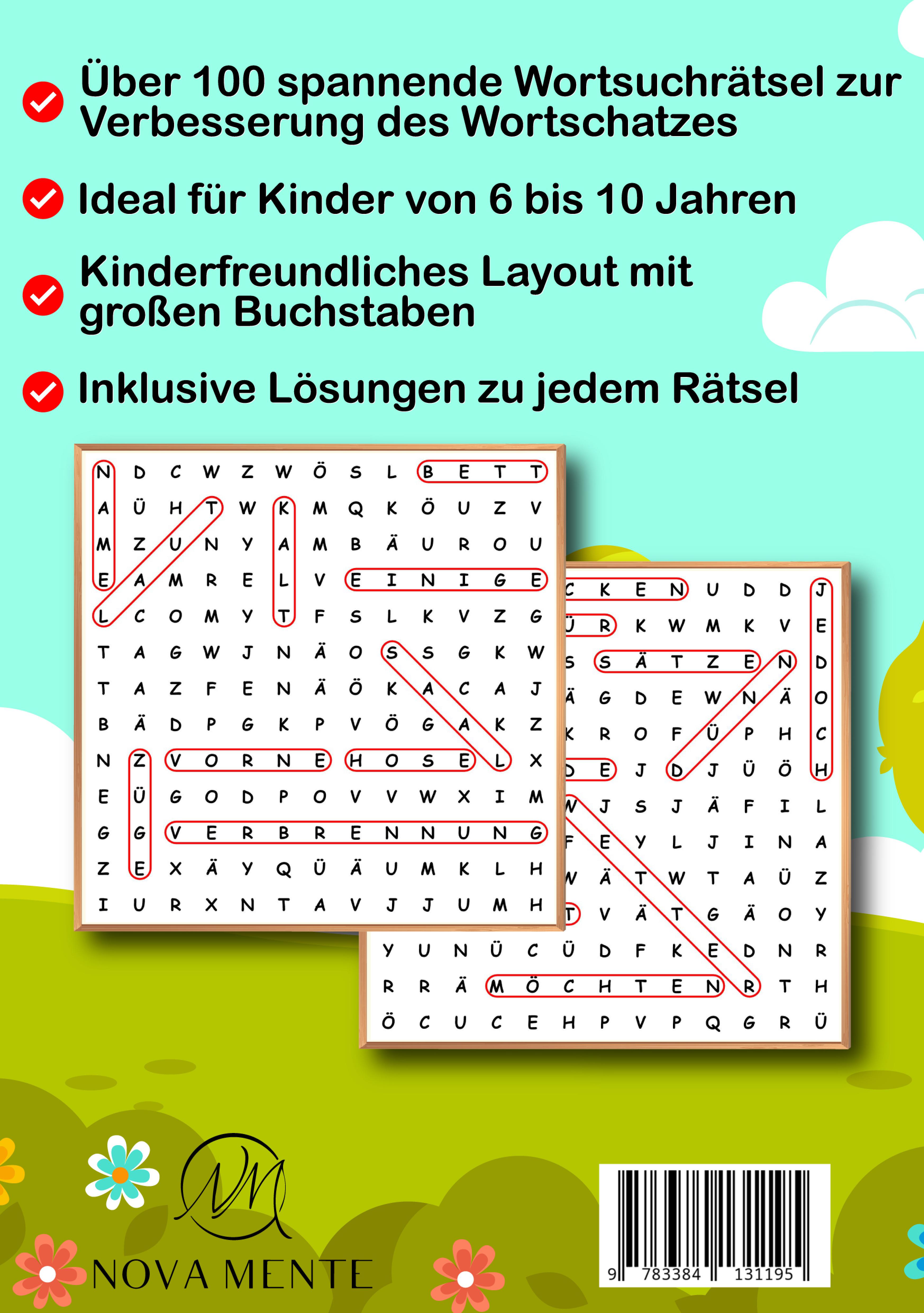 Bist Du auf der Suche nach einer spannenden Beschäftigung für Dein Kind im Grundschulalter, die nicht nur unterhält, sondern auch fördert? Möchtest Du, dass Dein Kind spielerisch neue Wörter lernt und dabei seine Konzentrationsfähigkeit verbessert?Dann ist dieses Wortsuchrätselbuch mit über 100 Buchstabenrätseln und mehr als 1000 Wörtern genau das Richtige! Es ist ein pädagogisch wertvolles Lernmittel, das Deinem Kind hilft, seine sprachlichen und kognitiven Fähigkeiten zu entwickeln.Was dieses Buch so einzigartig macht:Spielerisches Lernen: Durch das Lösen der Rätsel erweitert Dein Kind spielerisch seinen Wortschatz und lernt neue Begriffe kennen.Konzentration und Aufmerksamkeit: Die Suche nach den versteckten Wörtern fördert die Konzentrationsfähigkeit und Aufmerksamkeit Deines Kindes.Inklusive kostenloser Wortsuchrätsel zum Ausdrucken: Auf der ersten Seite findest Du einen Link, über den Du zusätzliche Wortsuchrätsel speziell für Kinder ab 6 Jahren kostenlos herunterladen und ausdrucken kannst.Umweltbewusst und qualitativ hochwertig: Wir legen Wert auf Qualität und Umweltbewusstsein. Gedruckt auf hochwertigem und umweltfreundlichem Papier, bietet dieser Rätselblock nicht nur Spaß, sondern schont auch die Umwelt.Mit Lösungen: Am Ende des Buches befindet sich ein Lösungsteil. So kann Dein Kind selbst überprüfen, ob es alle Wörter gefunden hat und sich über kleine Erfolgserlebnisse freuen.Ideal als Geschenk: Dieses Rätselheft eignet sich hervorragend als Geschenk - ob zum Geburtstag, zur Einschulung oder einfach als kleine Aufmerksamkeit zwischendurch.Kaufe jetzt dieses Rätselbuch und schenke Deinem Kind unendlichen Rätselspaß!