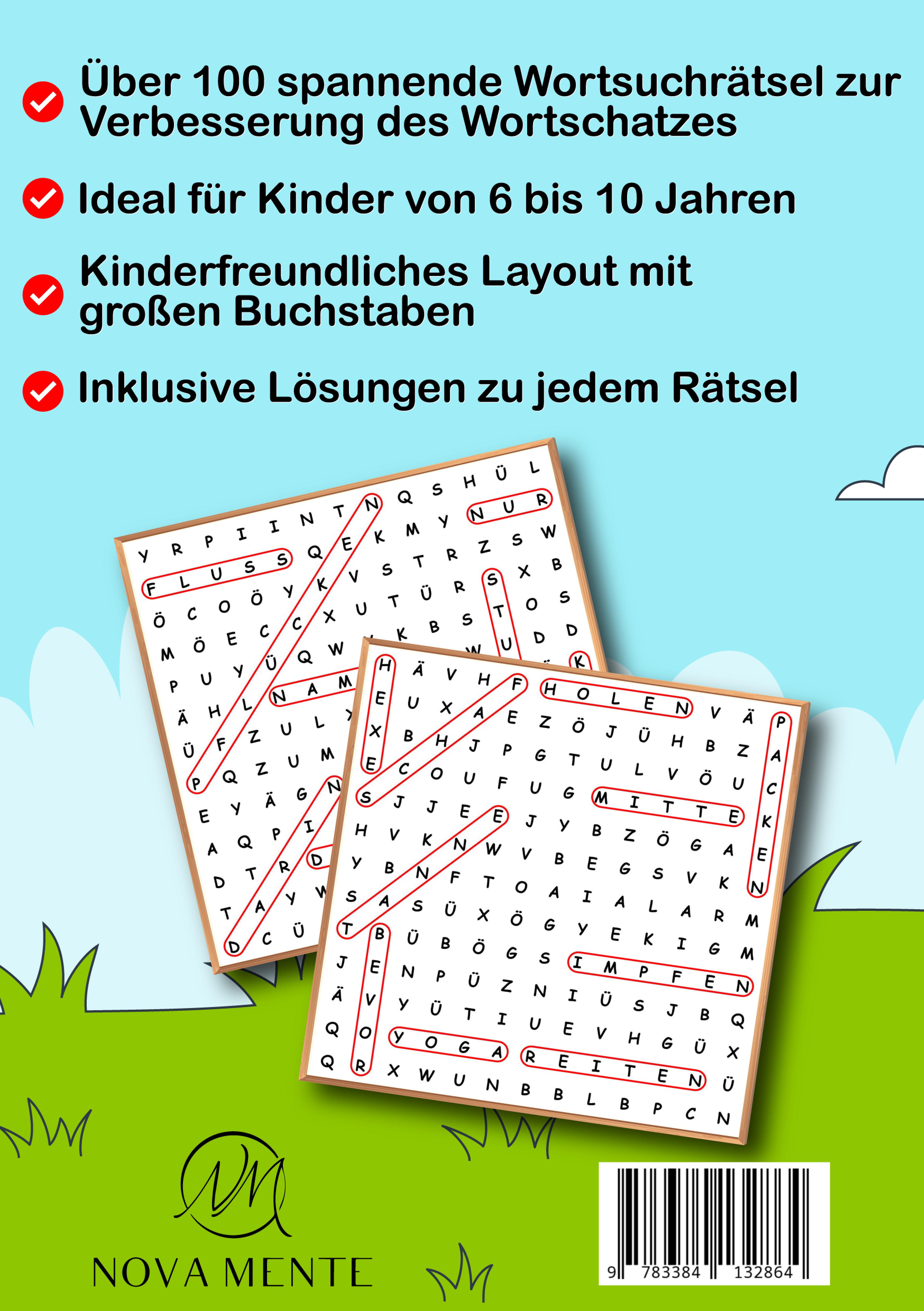 Fragst Du Dich manchmal, wie Du Dein Kind im Grundschulalter spielerisch fördern kannst? Möchtest Du, dass Dein Kind seine Konzentration und seinen Wortschatz verbessert, während es Spaß hat?Dann ist dieses Wortsuchrätselbuch mit über 100 Buchstabenrätseln und mehr als 1000 Wörtern genau das Richtige! Es ist ein pädagogisch wertvolles Lernmittel, das Deinem Kind hilft, seine sprachlichen und kognitiven Fähigkeiten zu entwickeln.Was dieses Buch so einzigartig macht:Erweiterung des Wortschatzes: Mit jedem gefundenen Wort erweitert sich spielerisch der Wortschatz Deines Kindes.Förderung der Konzentration: Durch das Lösen der Rätsel lernt Dein Kind, sich länger und intensiver auf eine Aufgabe zu konzentrieren.Inklusive kostenloser Wortsuchrätsel zum Ausdrucken: Auf der ersten Seite findest Du einen Link, über den Du zusätzliche Wortsuchrätsel speziell für Kinder ab 6 Jahren kostenlos herunterladen und ausdrucken kannst.Umweltbewusst und qualitativ hochwertig: Wir legen Wert auf Qualität und Umweltbewusstsein. Gedruckt auf hochwertigem und umweltfreundlichem Papier, bietet dieser Rätselblock nicht nur Spaß, sondern schont auch die Umwelt.Enthält Lösungen: Am Ende des Buches findest Du Lösungen, damit Dein Kind selbstständig seine Fortschritte überprüfen kann.Perfektes Geschenk: Dieses Rätselheft eignet sich hervorragend als Geschenk für Geburtstage, Einschulungen oder einfach als schöne Überraschung.Kaufe jetzt dieses Rätselbuch und beobachte, wie Dein Kind mit Begeisterung neue Wörter entdeckt und lernt!