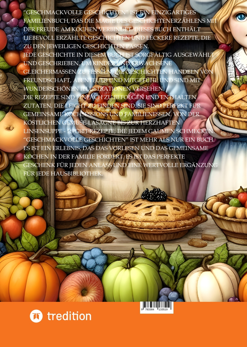 "Geschmackvolle Geschichten" ist ein einzigartiges Familienbuch, das die Magie des Geschichtenerzählens mit der Freude am Kochen verbindet. Dieses Buch enthält liebevoll erzählte Geschichten und leckere Rezepte, die zu den jeweiligen Geschichten passen.Jede Geschichte in diesem Buch ist sorgfältig ausgewählt und geschrieben, um Kinder und Erwachsene gleichermaßen zu fesseln. Die Geschichten handeln von Freundschaft, Abenteuer und Mitgefühl und sind mit wunderschönen Illustrationen versehen.Die Rezepte sind einfach zu befolgen und enthalten Zutaten, die leicht zu finden sind. Sie sind perfekt für gemeinsame Kochsessions und Familienessen. Von der köstlichen Gemüse-Lasagne bis zur herzhaften Linsensuppe - es gibt Rezepte, die jedem Gaumen schmecken."Geschmackvolle Geschichten" ist mehr als nur ein Buch. Es ist ein Erlebnis, das das Vorlesen und das gemeinsame Kochen in der Familie fördert. Es ist das perfekte Geschenk für jeden Anlass und eine wertvolle Ergänzung für jede Hausbibliothek.Bestellen Sie jetzt Ihr Exemplar von "Geschmackvolle Geschichten" und beginnen Sie Ihre eigene Reise durch Märchen und Mahlzeiten!