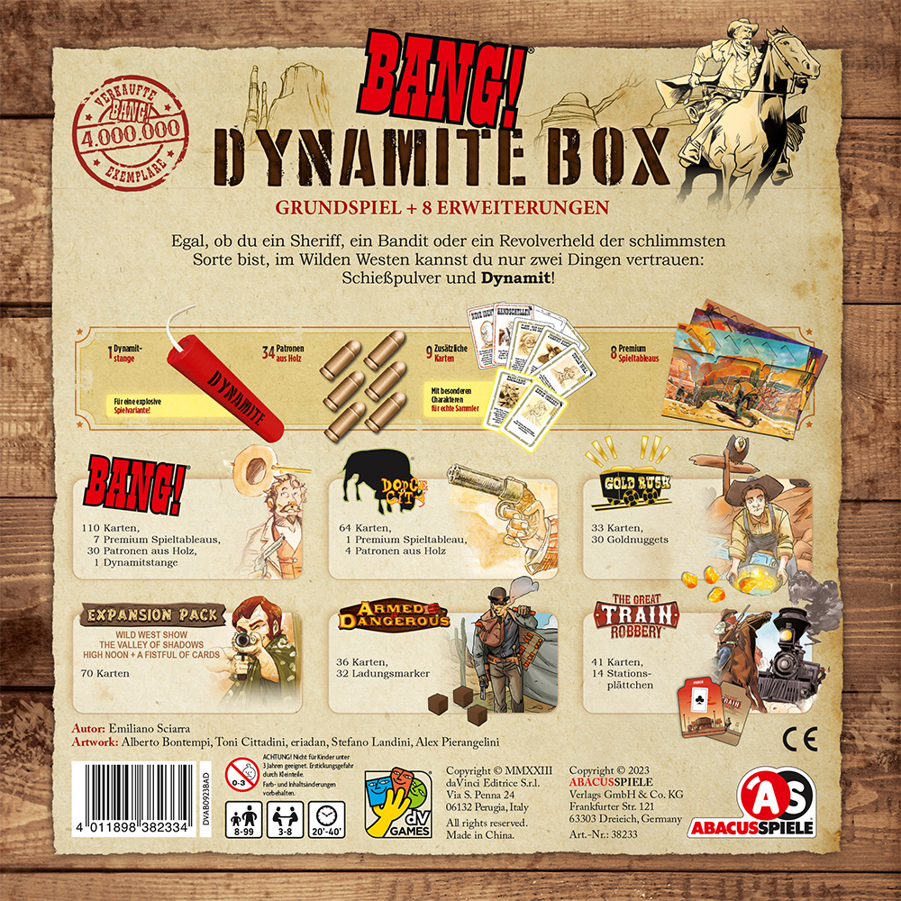 | Schlagworte | Bang! • Party • Spiele für große Gruppen • Spielesammlung • Western |