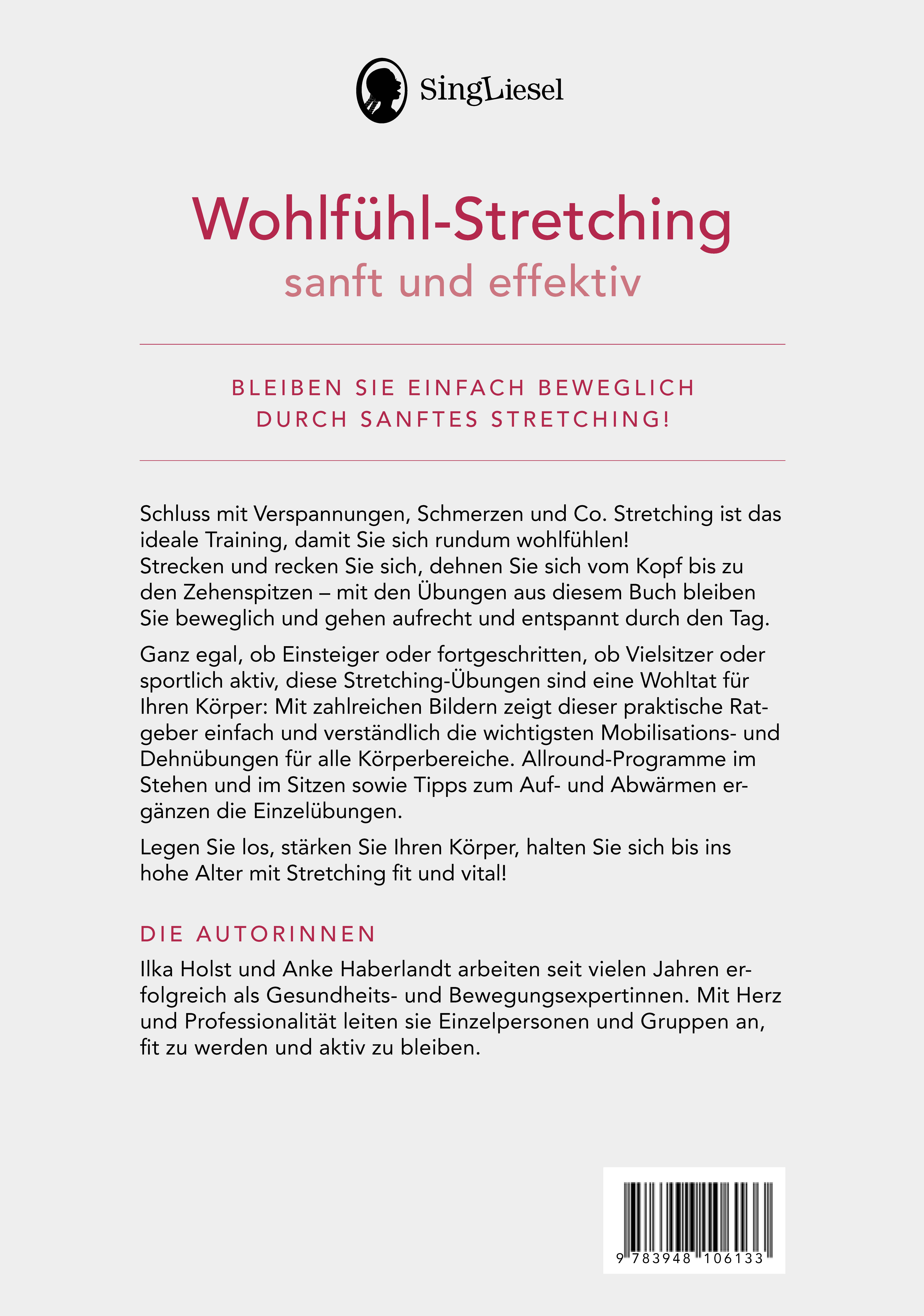 Ganz egal, ob Senior, Einsteiger oder fortgeschritten, ob Vielsitzer oder sportlich aktiv, diese Stretching-Übungen sind eine Wohltat für Ihren Körper: Mit zahlreichen Bildern zeigt dieser praktische Ratgeber einfach und verständlich die wichtigsten Mobilisations- und Dehnübungen für alle Körperbereiche. Allround-Programme im Stehen und im Sitzen sowie Tipps zum Auf- und Abwärmen ergänzen die Einzelübungen.