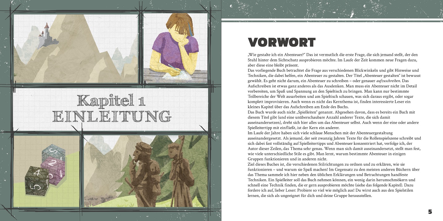 In Abenteuer gestalten findest du handfeste Techniken, wie du solche Abenteuer und viele weitere entwirfst. Auf über 250 Seiten entdeckst du Tipps, Tricks und handschriftliche Ergänzungen unserer Kommentatoren. Mit der Gebrauchsanweisung für schnelle Hilfe gibt es sogar einen Leitfaden, wenn du kurzfristig ein Abenteuer brauchst und gar nichts vorbereitet hast.