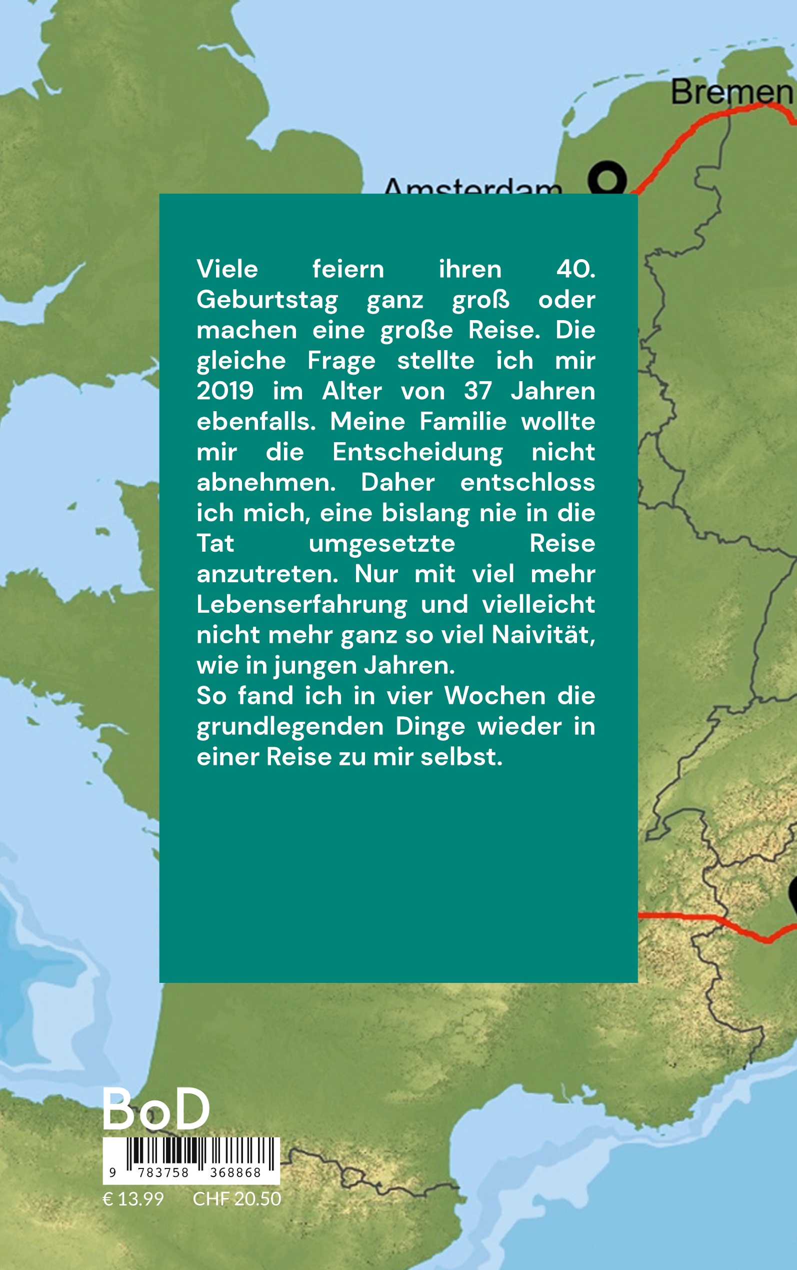 Viele feiern ihren 40. Geburtstag entweder ganz groß oder sie machen stattdessen eine große Reise. Die gleiche Frage stellte ich mir 2019 im Alter von 37 Jahren ebenfalls. Meine Familie wollte mir die Entscheidung nicht abnehmen. Daher entschloss ich mich, eine bislang nie in die Tat umgesetzte Reise anzutreten; nur mit viel mehr Lebenserfahrung und vielleicht nicht mehr ganz so viel Naivität wie in jungen Jahren.So fand ich in vier Wochen die grundlegenden Dinge wieder in einer Reise zu mir selbst.
