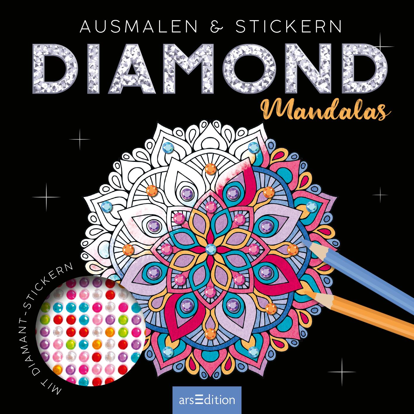 - 24 verschiedene Motive: Hier finden sich zahlreiche Mandalas zum Anmalen, die mit 700 farbigen Diamanten zusätzlich verziert werden können.
