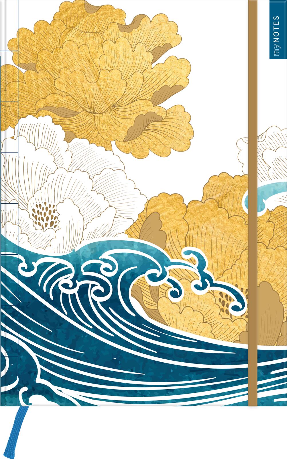 - Hochwertig veredelt: Die Wellen des pazifischen Ozeans brechen vor den mit goldenem Schimmer überzogenen Pfingstrosen. So trägst du die Natursymbolik Japans immer bei dir.