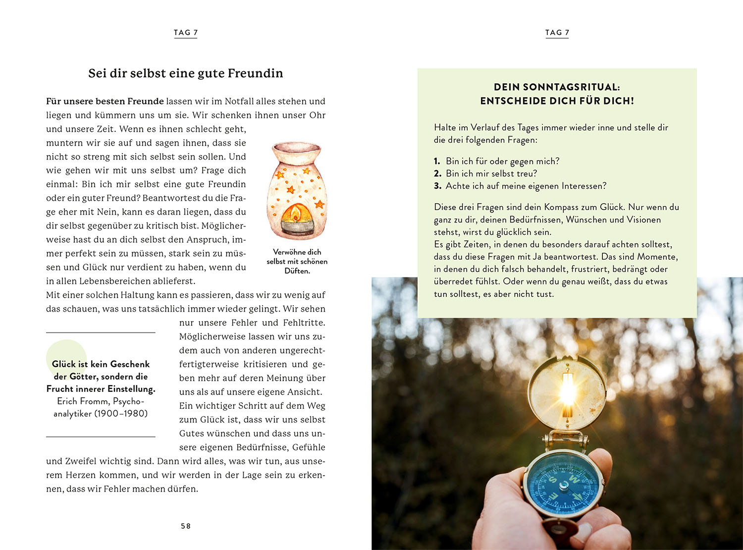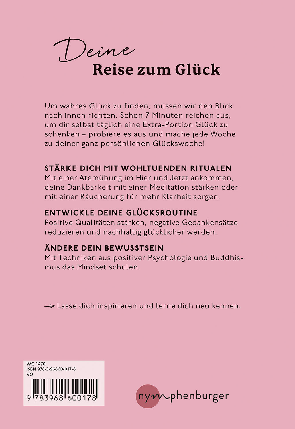 7 Minuten täglich – mehr braucht es nicht, um glücklich zu sein! Doris Iding zeigt wie das geht: Ihre Übungen und Rituale helfen dabei, die Aufmerksamkeit auf das Positive zu lenken, sorgen für entspannende Momente und führen bei regelmäßiger Praxis zu mehr Ruhe und Gelassenheit im Alltag.