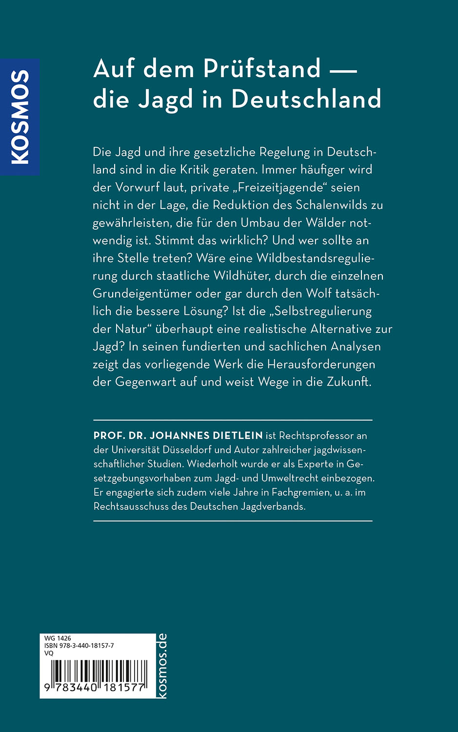 Es ist der ewige Streit zwischen Jagdbefürwortern und -gegnern: Hat die Jagd in der heutigen Zeit noch ihre Berechtigung? Prof. Johannes Dietlein ist Experte für die rechtlichen jägerlichen Grundlagen und gibt in diesem Buch spannende Einsichten in den politischen Diskurs rund um die Jagd.