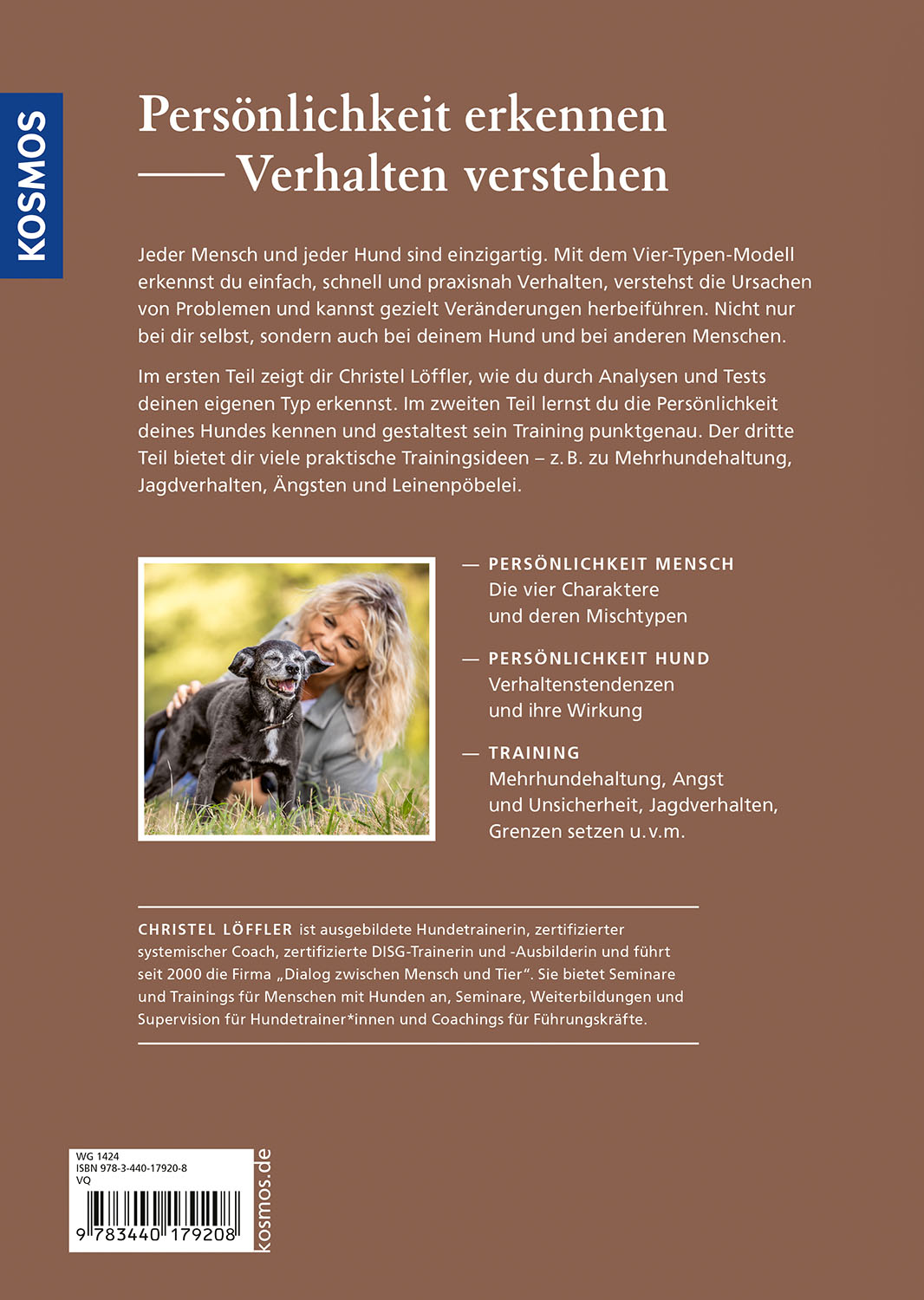 Jeder Mensch und auch jeder Hund haben einen einzigartigen Charakter. Christel Löffler, zertifizierte DISG-Trainerin, nimmt Hundehalterinnen und -halter mit auf die spannende Reise der Persönlichkeitsanalyse. Das Ziel: sich selbst besser kennenlernen und seinen Hund verstehen. Der Ratgeber zeigt, welchen Einfluss z.B. Persönlichkeit, Erfahrungen und Glaubenssätze auf eine Partnerschaft haben. Durch dieses tiefere Verständnis kann man die Erziehung und das Training individuell gestalten, Vertrauen stärken und eine authentische Beziehung zu seinem Hund entwickeln.