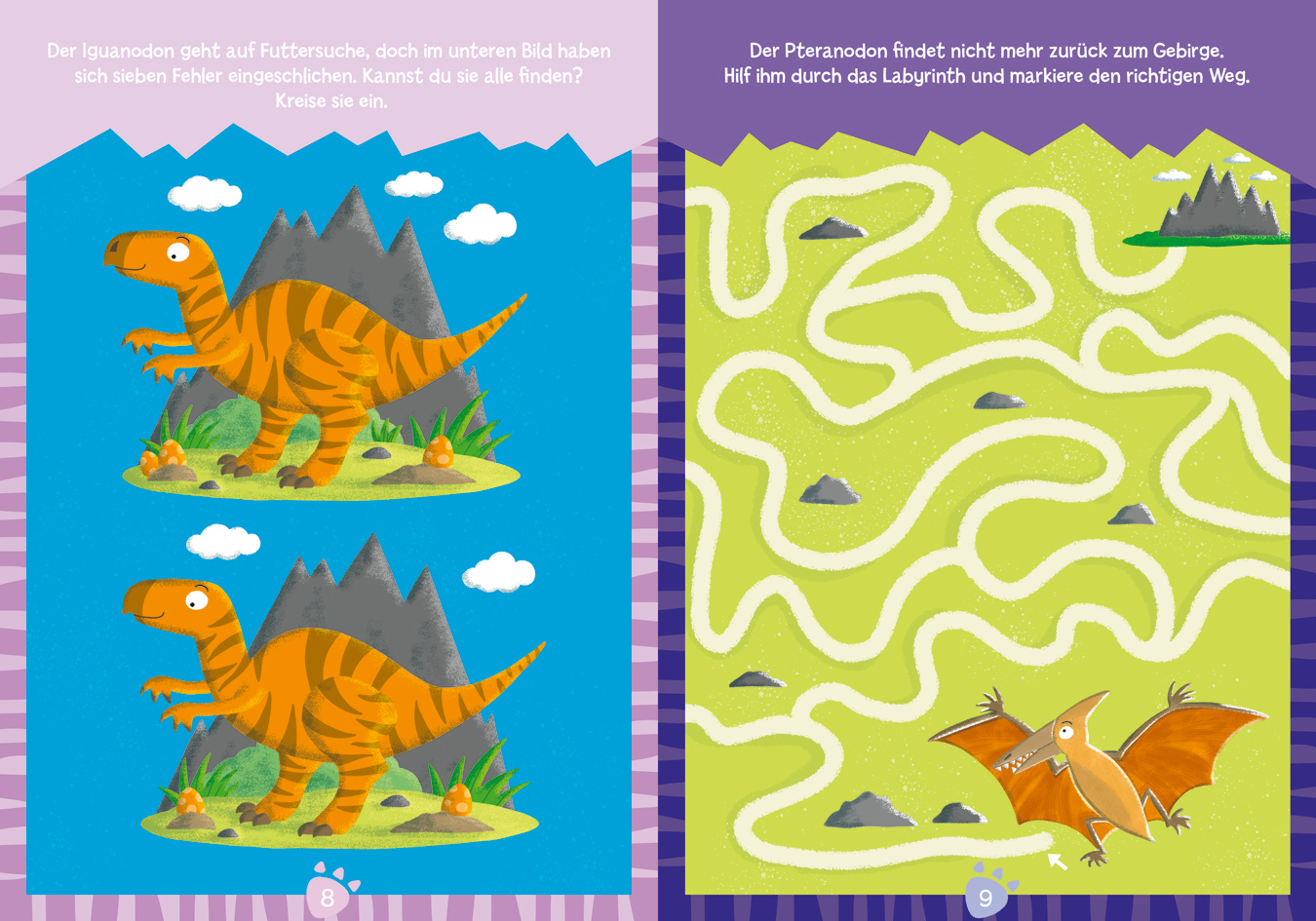 Kunterbunter Rätselspaß für kleine Dino-Fans. Hier wird mit den Lieblingsdinos gerätselt, gemalt und gezählt. Erste Sudokus, Malen nach Zahlen, Labyrinthe und viele weitere tolle Rätsel müssen gelöst werden. Die Lösungsseiten zeigen, ob alles richtig ist oder helfen auf die Sprünge, wenn es mal hakt. Dinostarke Rätselfreude für Kinder ab 4 Jahren.