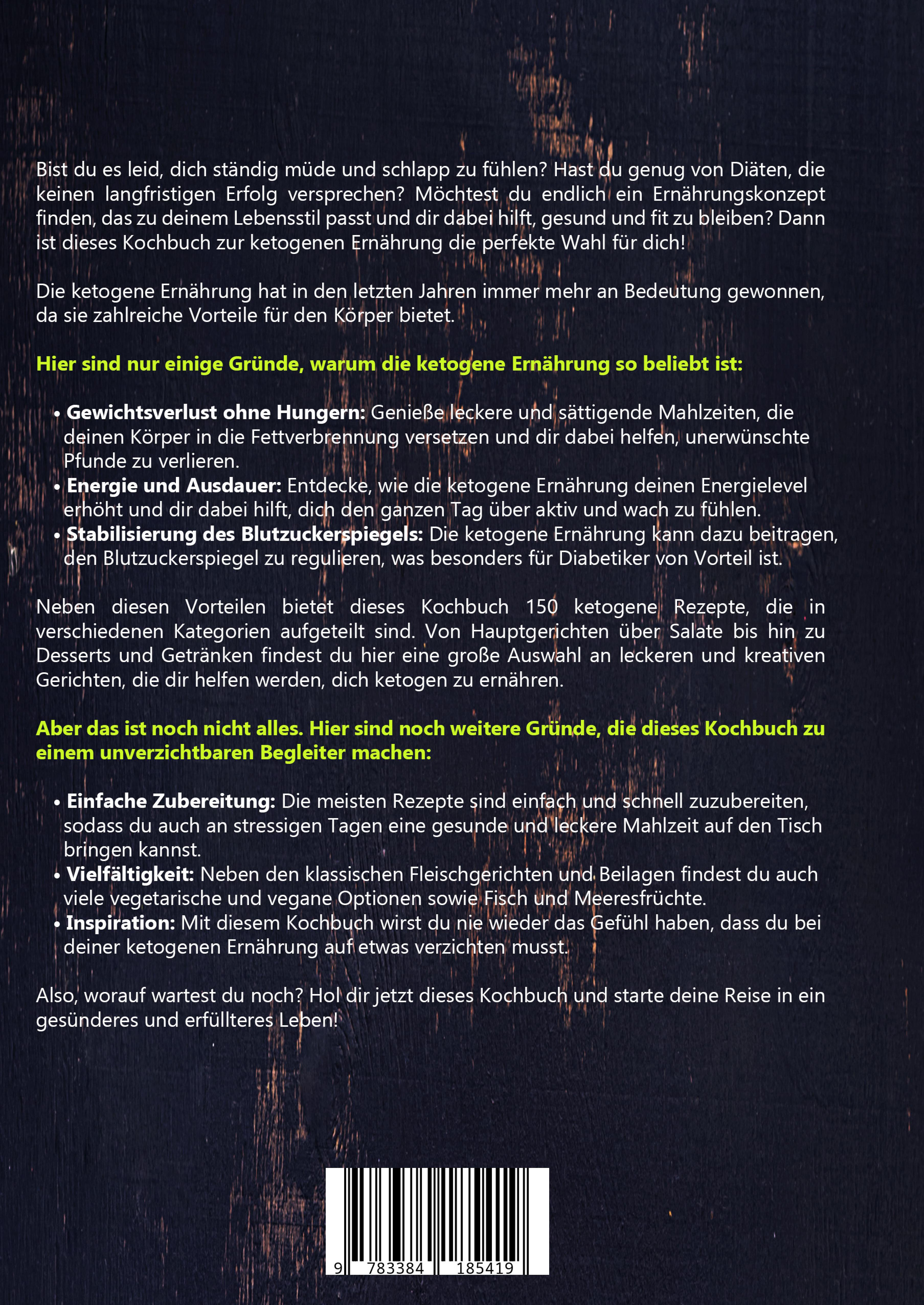 Bist du es leid, dich ständig müde und schlapp zu fühlen? Hast du genug von Diäten, die keinen langfristigen Erfolg versprechen? Möchtest du endlich ein Ernährungskonzept finden, das zu deinem Lebensstil passt und dir dabei hilft, gesund und fit zu bleiben?Dann ist dieses Kochbuch zur ketogenen Ernährung die perfekte Wahl für dich!Die ketogene Ernährung hat in den letzten Jahren immer mehr an Bedeutung gewonnen, da sie zahlreiche Vorteile für den Körper bietet. Hier sind nur einige Gründe, warum die ketogene Ernährung so beliebt ist:- Reduzierung von Entzündungen: Eine ketogene Ernährung kann helfen, Entzündungen im Körper zu reduzieren, was wiederum das Risiko von chronischen Erkrankungen wie Diabetes, Herzkrankheiten und Krebs verringern kann.- Gewichtsverlust ohne Hungern: Genieße leckere und sättigende Mahlzeiten, die deinen Körper in die Fettverbrennung versetzen und dir dabei helfen, unerwünschte Pfunde zu verlieren.- Energie und Ausdauer: Entdecke, wie die ketogene Ernährung deinen Energielevel erhöht und dir dabei hilft, dich den ganzen Tag über aktiv und wach zu fühlen.- Stabilisierung des Blutzuckerspiegels: Die ketogene Ernährung kann dazu beitragen, den Blutzuckerspiegel zu regulieren, was besonders für Diabetiker von Vorteil ist.- Stärkung des Immunsystems: Unterstütze dein Immunsystem und beuge Krankheiten vor, indem du deinen Körper mit den richtigen Nährstoffen versorgst.Neben diesen Vorteilen bietet dir dieses Kochbuch 150 abwechslungsreiche ketogene Rezepte, die in verschiedenen Kategorien aufgeteilt sind. Von Hauptgerichten über Salate bis hin zu Desserts und Getränken findest du hier eine große Auswahl an leckeren und kreativen Gerichten, die dir helfen werden, dich ketogen zu ernähren.Aber das ist noch nicht alles. Hier sind noch weitere Gründe, die dieses Kochbuch zu einem unverzichtbaren Begleiter machen:- Einfache Zubereitung: Die meisten Rezepte sind einfach und schnell zuzubereiten, sodass du auch an stressigen Tagen eine gesunde und leckere Mahlzeit auf den Tisch bringen kannst.- Vielfältigkeit: Neben den klassischen Fleischgerichten und Beilagen findest du auch viele vegetarische und vegane Optionen sowie Fisch und Meeresfrüchte.- Inspiration: Mit diesem Kochbuch wirst du nie wieder das Gefühl haben, dass du bei deiner ketogenen Ernährung auf etwas verzichten musst.Also, worauf wartest du noch? Hol dir jetzt dieses Kochbuch und starte deine Reise in ein gesünderes und erfüllteres Leben!